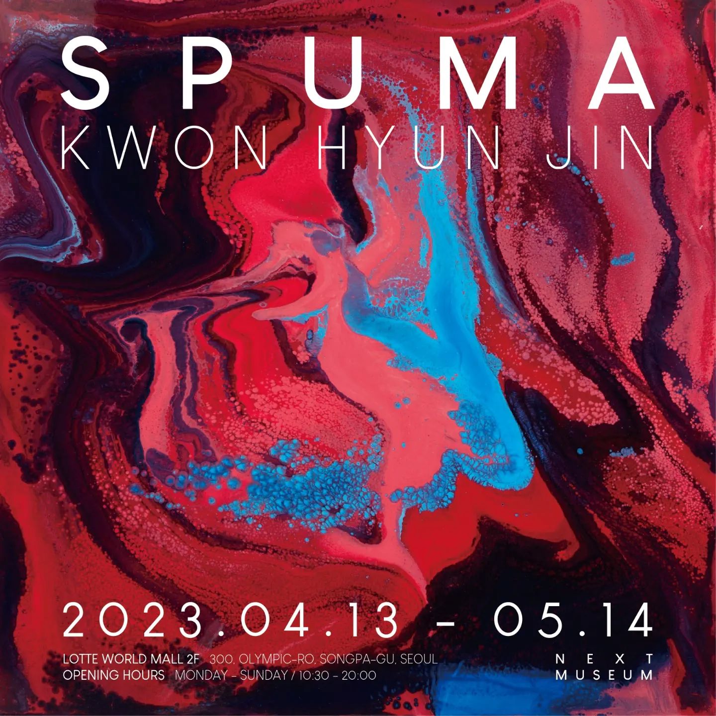 넥스트 뮤지엄은 한국 추상의 새로운 장르를 만들어 내는 권현진 개인전<KWON HYUN JIN SOLO EXHIBITION: SPUMA> 를 개최한다. 작가는 "빛을 보고 눈을 감았을 때 안구에 맺히는 가상의 환영들에 대한 시각적 이미지"를 주제로 작업하고 있으며, 이번 전시에서는 작가의 작품 속 "SPUMA"에 초점을 맞췄다.