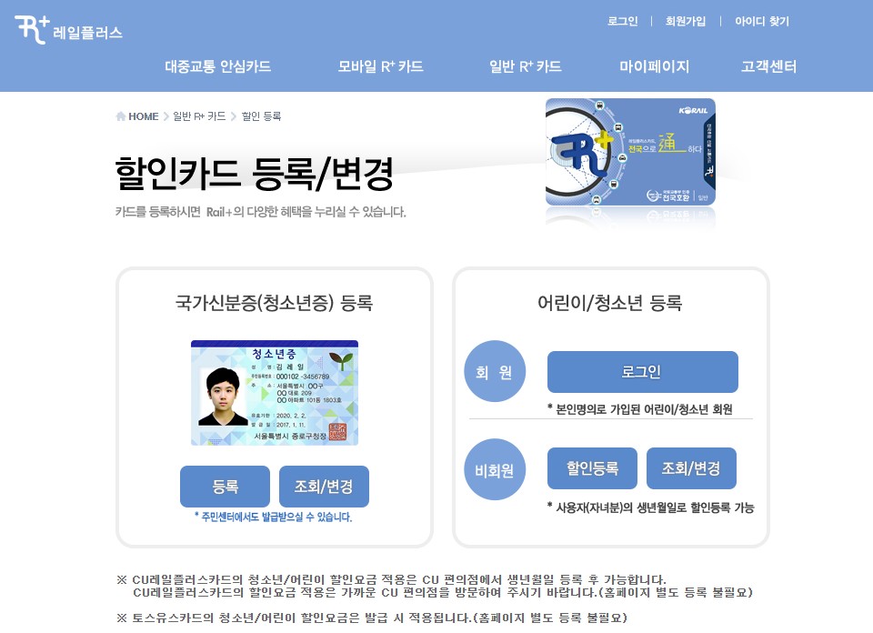 어린이/청소년 요금 할인을 받기 위해서는 레일플러스 홈페이지 또는 CU 편의점에서 교통카드를 등록해야 합니다. 특히 교통카드 요금을 연말정산 할인받기 위해서는 '레일플러스 → 할인카드 등록 → 퍼핀카드 뒤 '2094'로 시작하는 Rail+ 번호와 생년월일 입력' 해야 하는데요. 등록 후 할인 요금이 적용되려면 최대 3일이 소요될 수 있습니다.