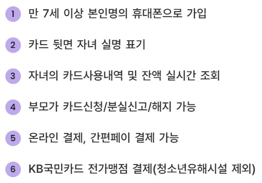 - 아이명의의 휴대폰이 없으면 발급이 불가능합니다. (본인명의 중학생 / 초등학생 체크카드)