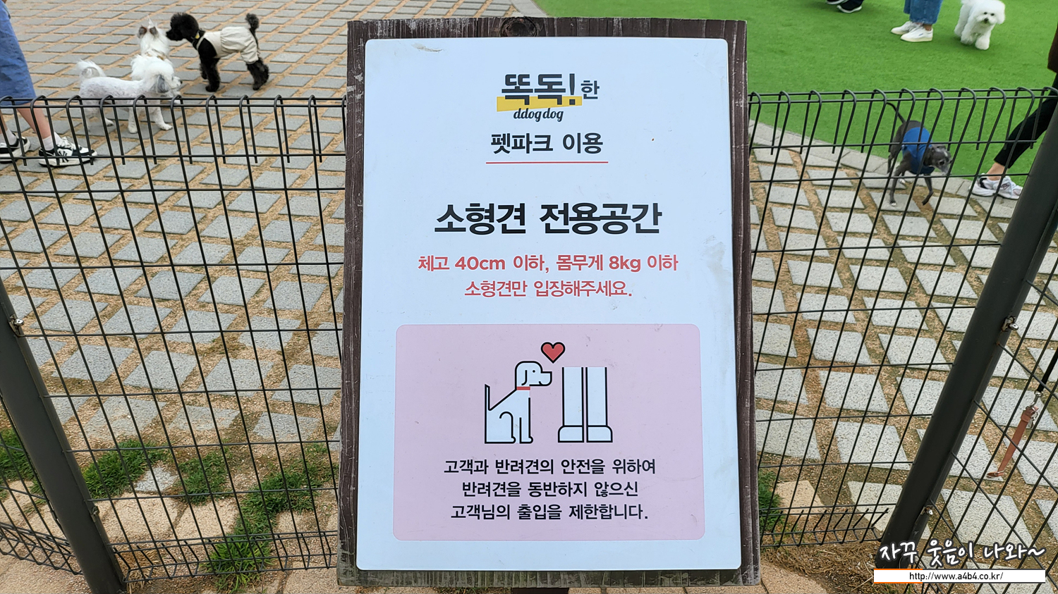 먼저 소형견 공간입니다. 체고 40cm이하 몸무게 8kg이하의 소형견만 입장이 가능한 공간입니다. 입장 조건이나 이용방식은 아주 상식적인 수준에서 이용하시면 됩니다.