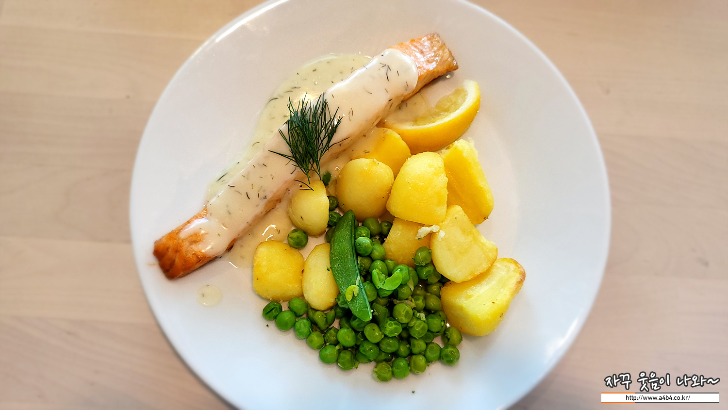 이 메뉴도 이곳 이케아 푸드코트 레스토랑에 오면 항상 주문하는 메뉴입니다. 제가 연어나 생선류를 워낙 좋아해서요. 담백한 연어구이와 함께 레몬딥소스가 올라가고, 구운감자와 강남콩이 사이드로 나오는 이케아 연어필렛을 워낙 좋아합니다.
