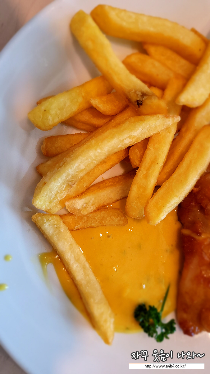 이케아 레스토랑에서 판매하고 있는 소금구이 닭갈비 스테이크는 감자튀김과 느끼한~ 치즈소소, 그리고 닭갈비 구이 두 덩어리가 나오는 메뉴입니다.