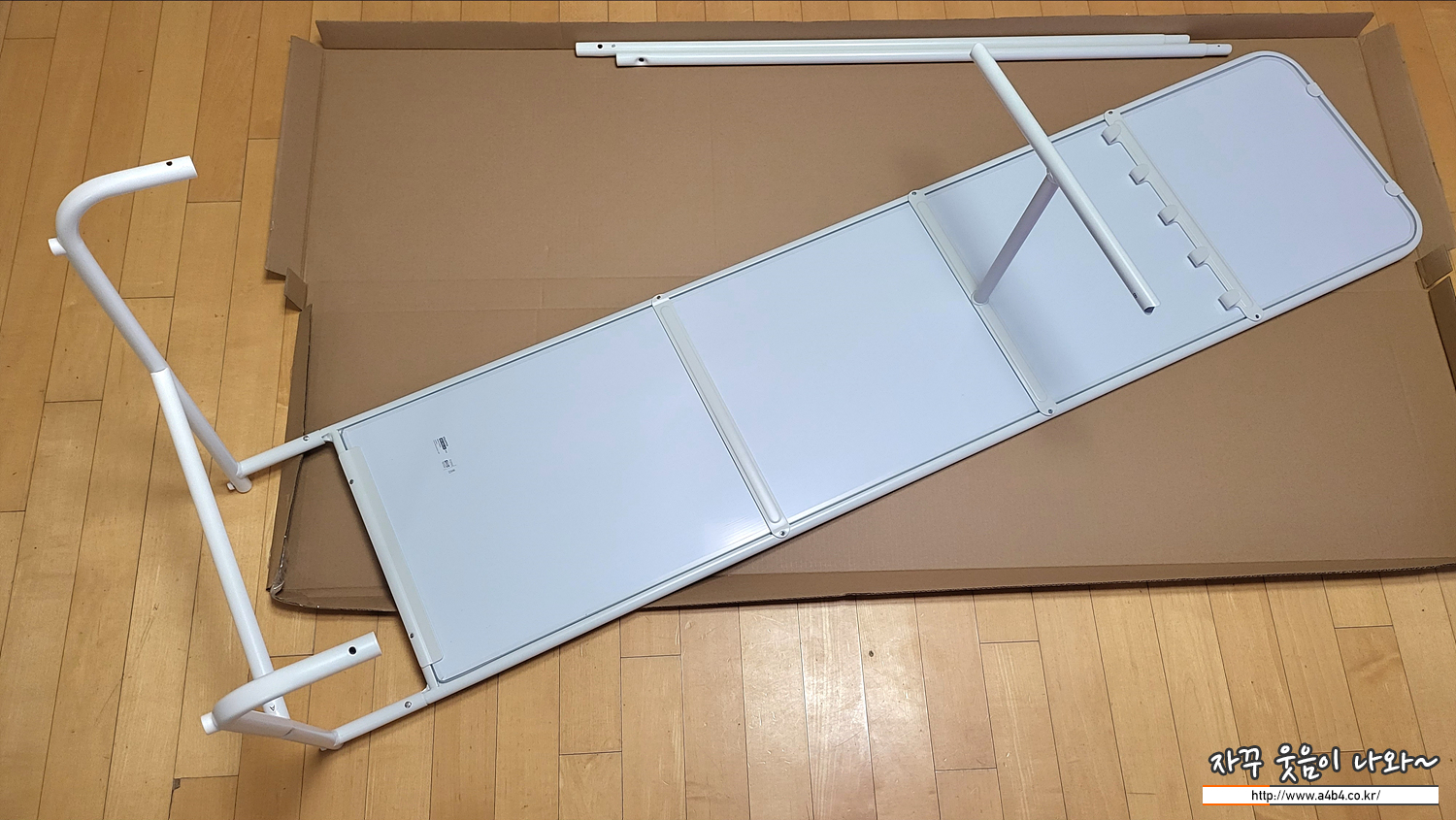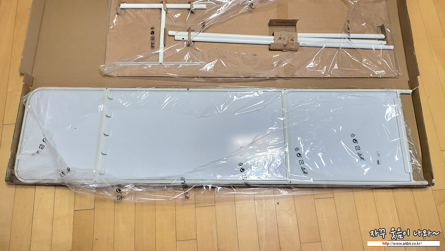 거울 사이즈는 48x160 cm로 한 박스에 모든 부속품이 포함되어 있습니다만 상당히 긴 사이즈로 일반 소형 승용차로 이동하기에는 어려운 사이즈를 보입니다.