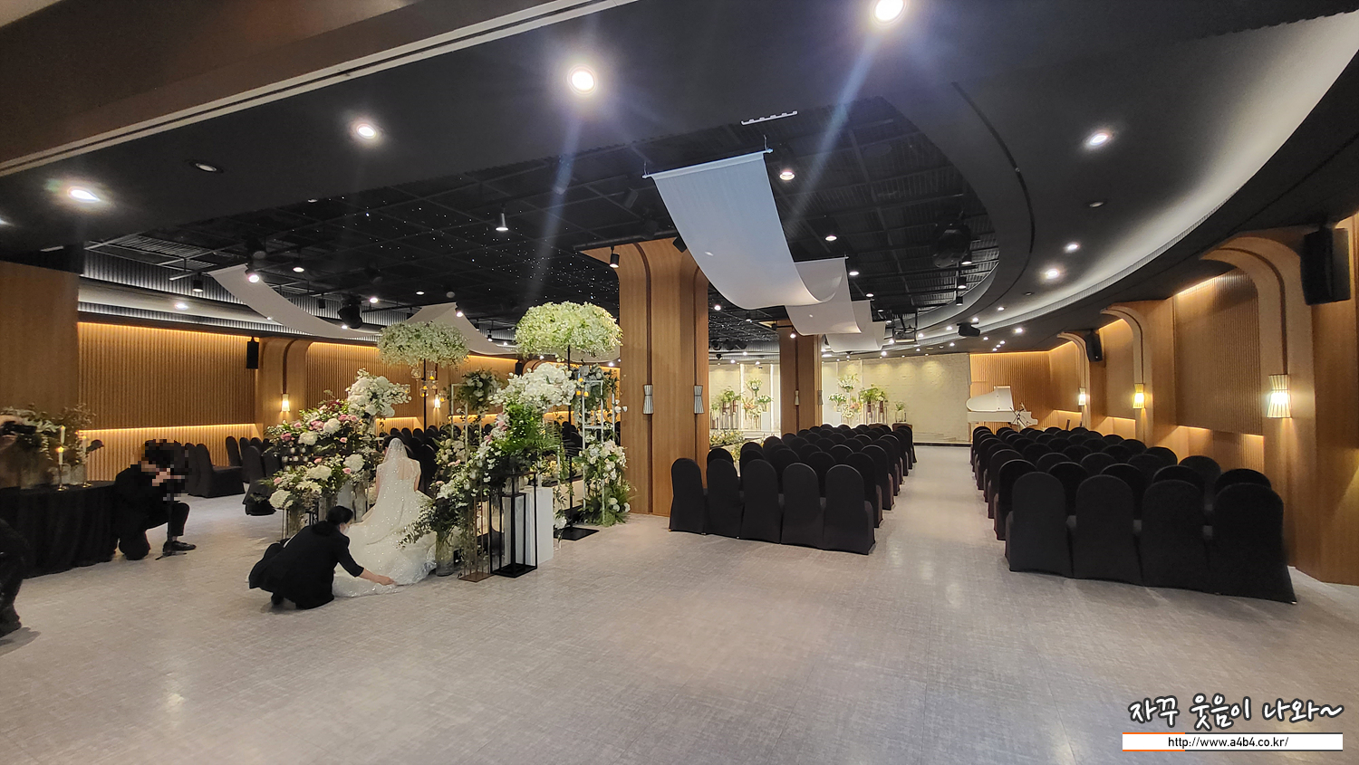 고대 교우회관 예식장은 대략 이런모습입니다. 깔끔한 구성을 보이고요. 식장은 1층 좌측에 식당은 지하에 위치해 있습니다. 식당에서는 스크린을 통해 결혼식 모습을 볼 수 있습니다. 저는 오후에 또 다른 약속이 있어 신랑신부 입장을 보고 바로 지하 식당으로 이동합니다.