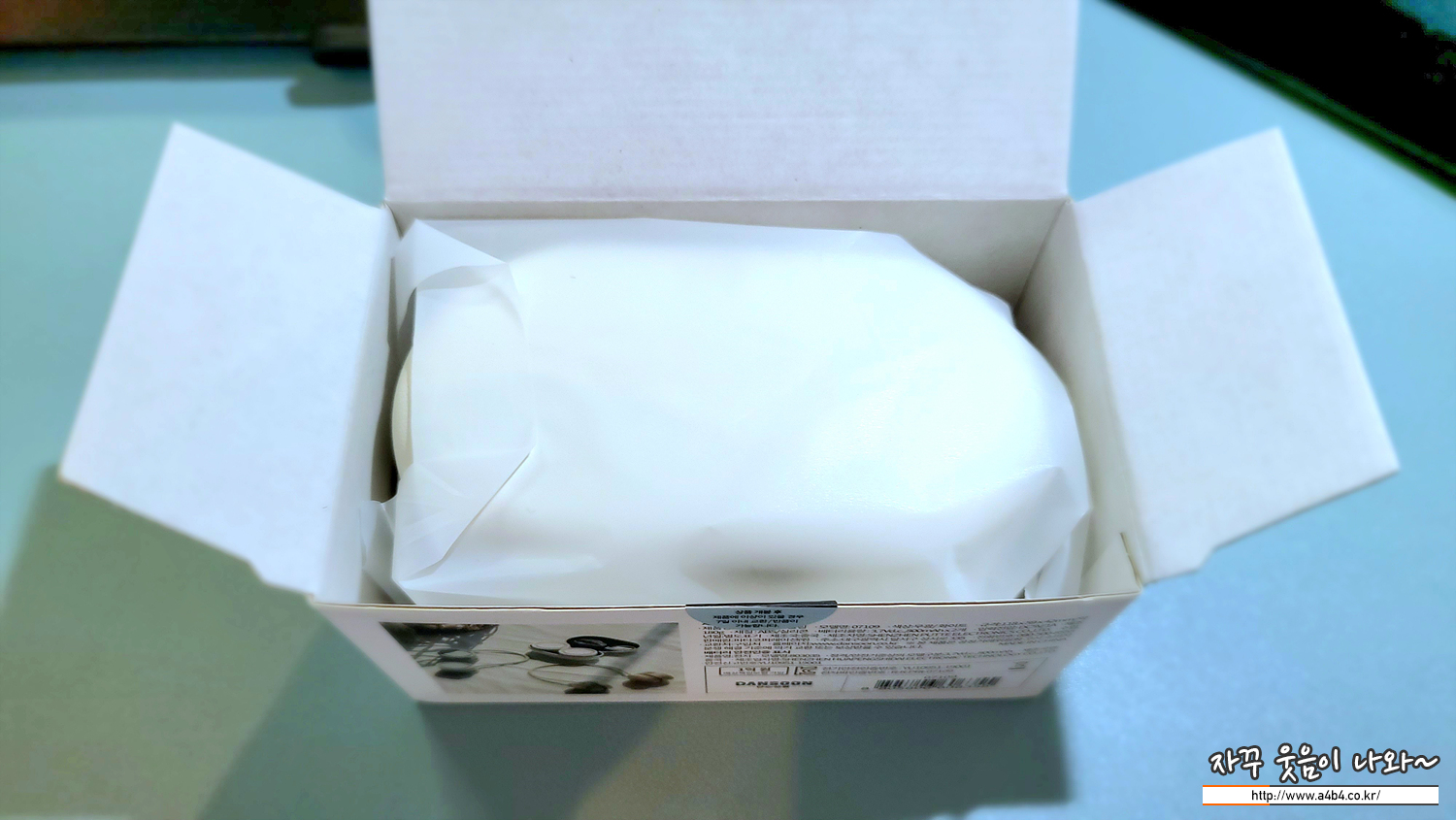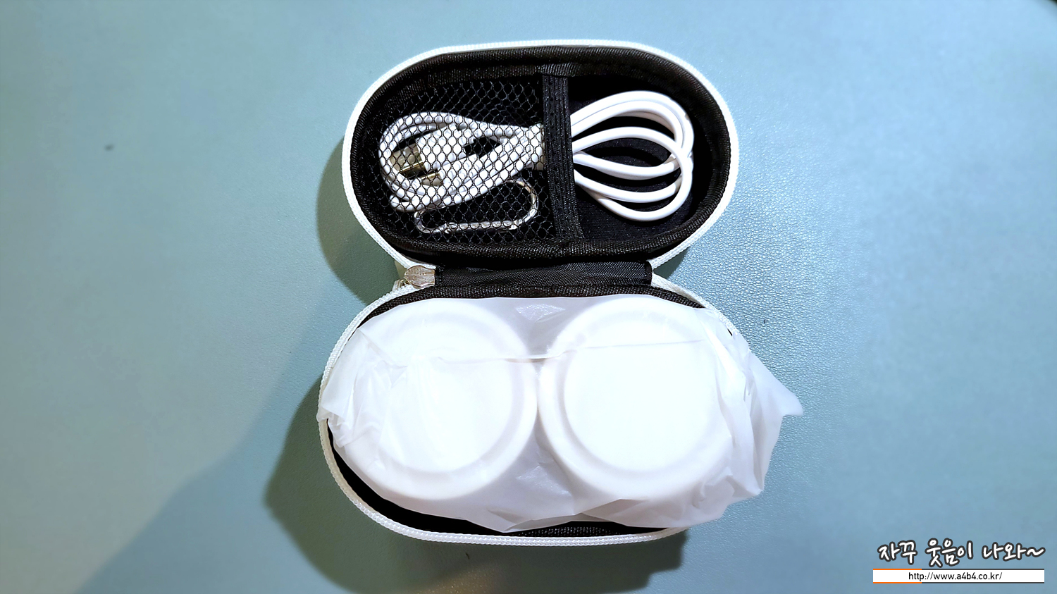 박스를 개봉하면 흰색 파우치가 보입니다. 휴대용 선풍기에 수납이 편한 넥밴드 방식으로 파손 없이 휴대성과 보관을 고려한 파우치로 보입니다. 파우치 가격만 고려해도 10,000원은 너무나 혜자스러운 가격이네요.