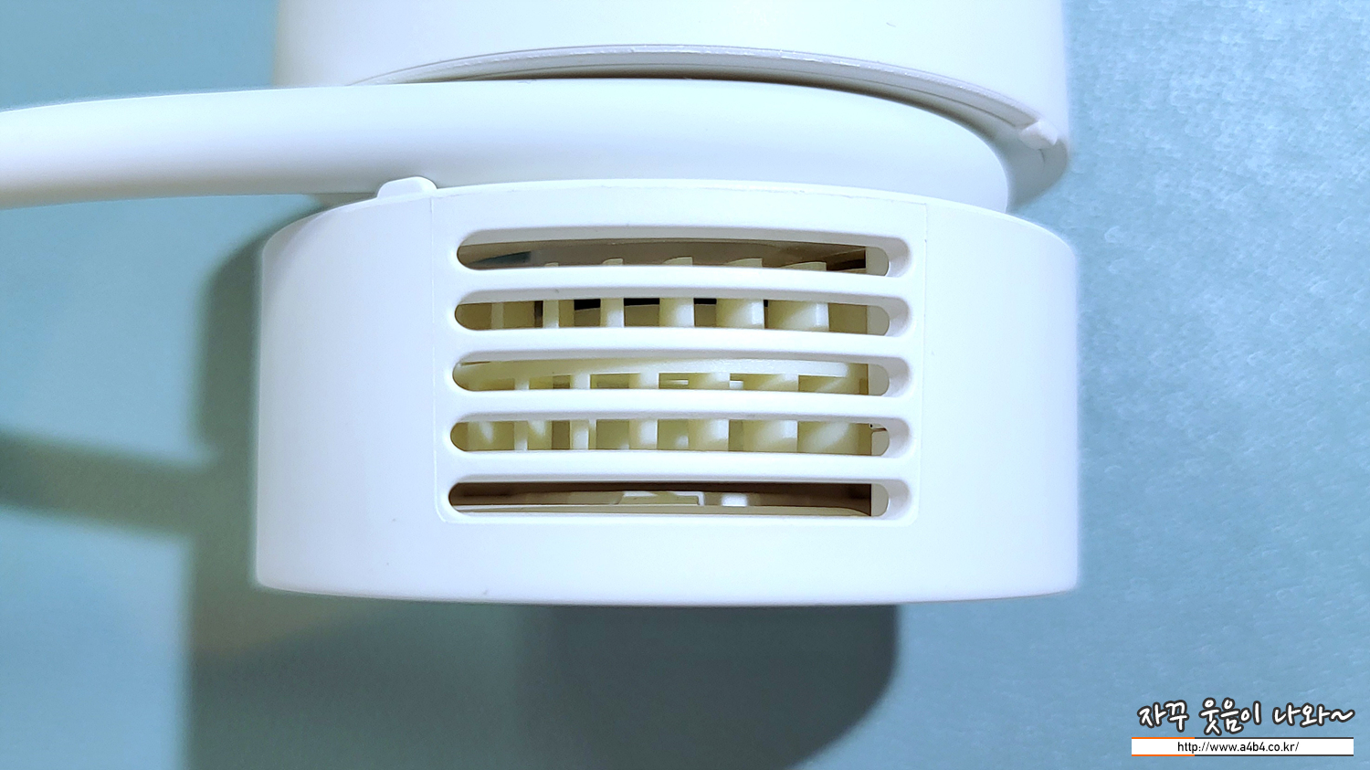 단순생활 넥밴드 선풍기는 화이트와 연베이지 연그레이 세가지 컬러가 준비되어 있으며, 오늘 리뷰하는 제품은 화이트입니다. 무광으로 상당히 고급스러운 발색을 보여주며, 전체적인 디자인은 과하거나 촌스럽지 않고 무난한 모양을 보여줍니다. 비록 10,000원에 구입했지만 싸구려 느낌은 나지 않습니다.