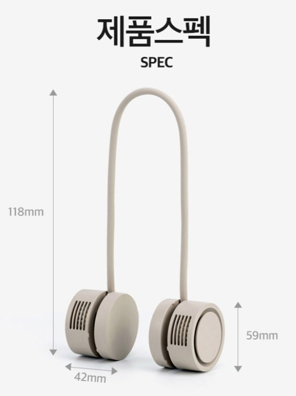 프린텍 단순생활 넥밴드 선풍기 중량은 180g으로 휴대성과 목에 걸어도 큰 무게감을 느끼지 못합니다. 상당히 편하게 목에 걸고 사용할 수 있습니다.