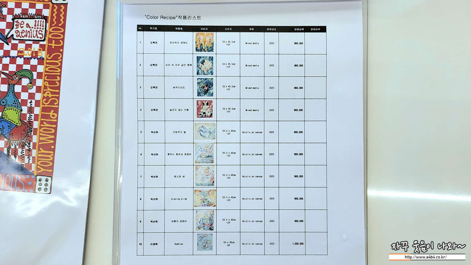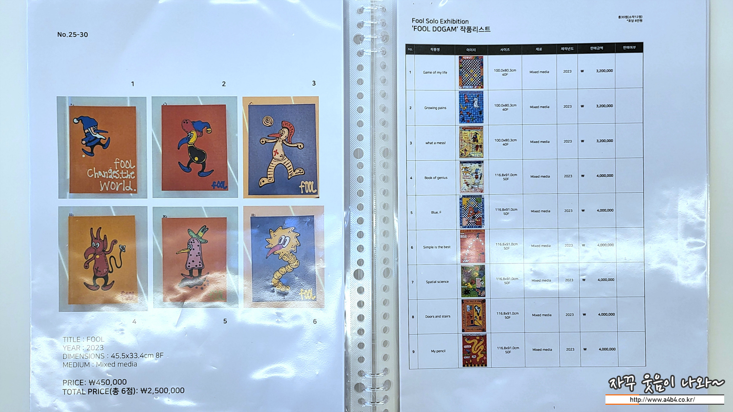 풀도감 (FOOL DOGAM) 전시회에 소개된 FOOL (장건영) 작각의 작품은 현장에서 구매도 가능합니다. 작품 가격은 400만원 전후 가격이 형성되어 있네요.