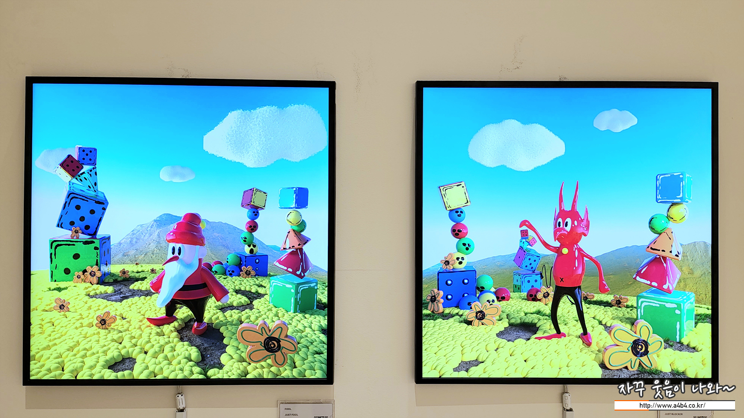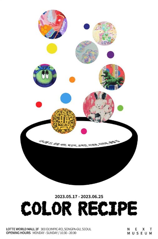 독특한 시선으로 사회를 바라보는 Fool (장건영) 작가의 첫 개인전인 'FOOL DOGAM' 전시회와 색감을 주제로 7명의 작가의 작품을 만나볼 수 있는 'Color Recipe' 전시회가 잠실 롯데월드몰 2층 넥스트 뮤지엄에서 열리고 있습니다.