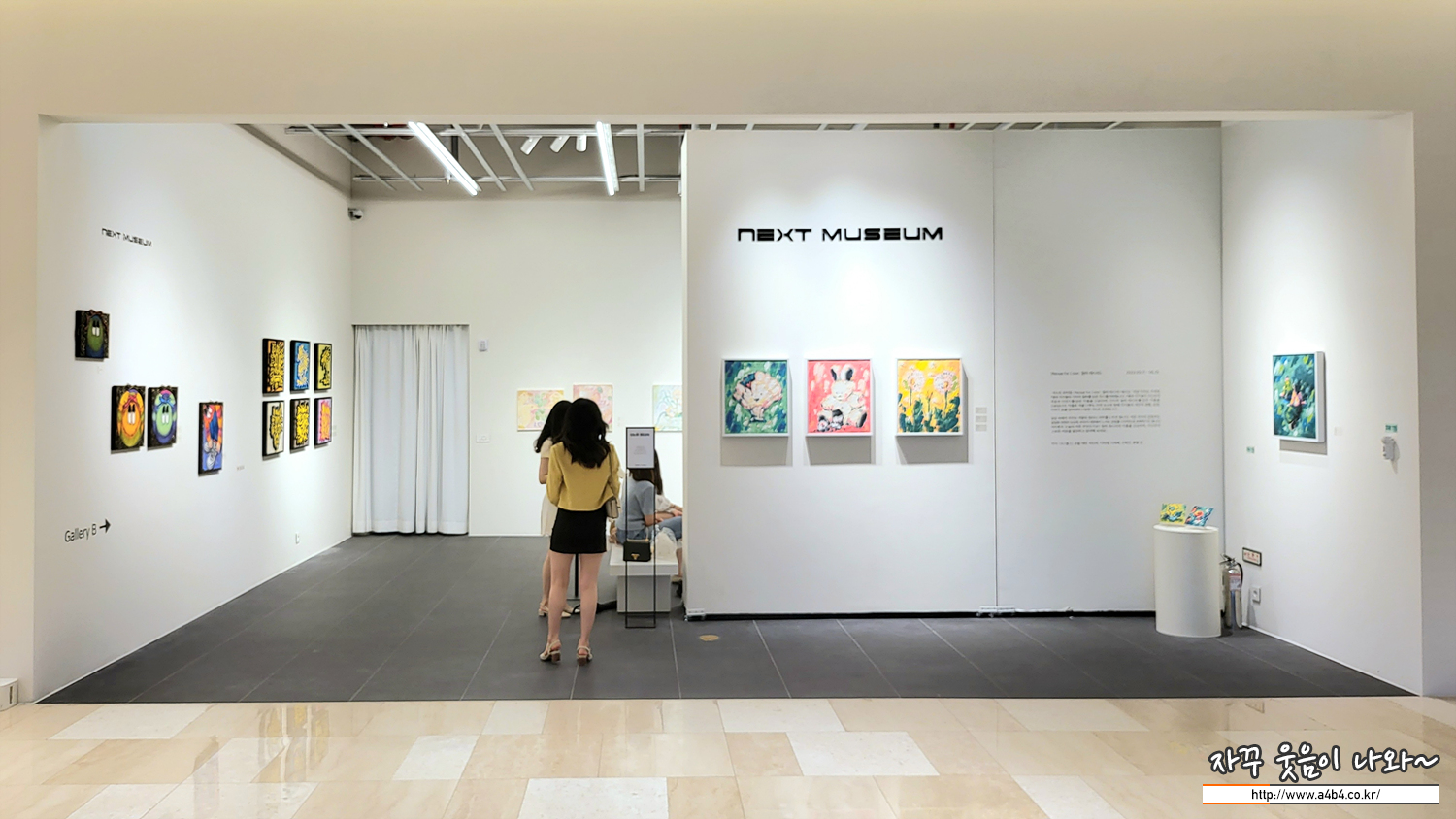 잠실 롯데월드몰과 롯데월드타워에는 3곳의 전시관이 있는데요. 이곳 넥스트뮤지엄은 국내의 핫한 현대작가들의 작품들을 상당히 빠른 주기로 교체하면서 작품들을 선보이고 판매하는 곳입니다. 갤러리 1과 2가 있으며 지금까지는 무료 전시회로 운영되고 있습니다. 휴일에 산책하면서 작품 감상하기에 좋은 곳입니다.