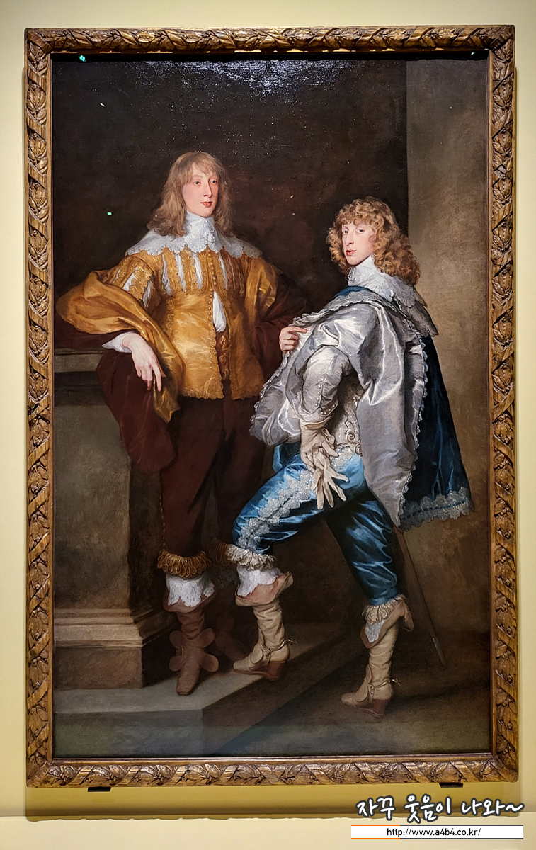 그림 속 소년들은 영국 귀족인 3대 레녹스 공작의 아들들로, 왼쪽이 형인 존 스튜어트, 오른쪽이 동생 버나드 스튜어트입니다. 당시 18세, 17세에 불과했지만 귀족적인 거만함이 느껴집니다. 두 사람의 자세와 호화로운 옷은 이들의 부유함과 높은 신분이 돋보이도록 계산된 것입니다.