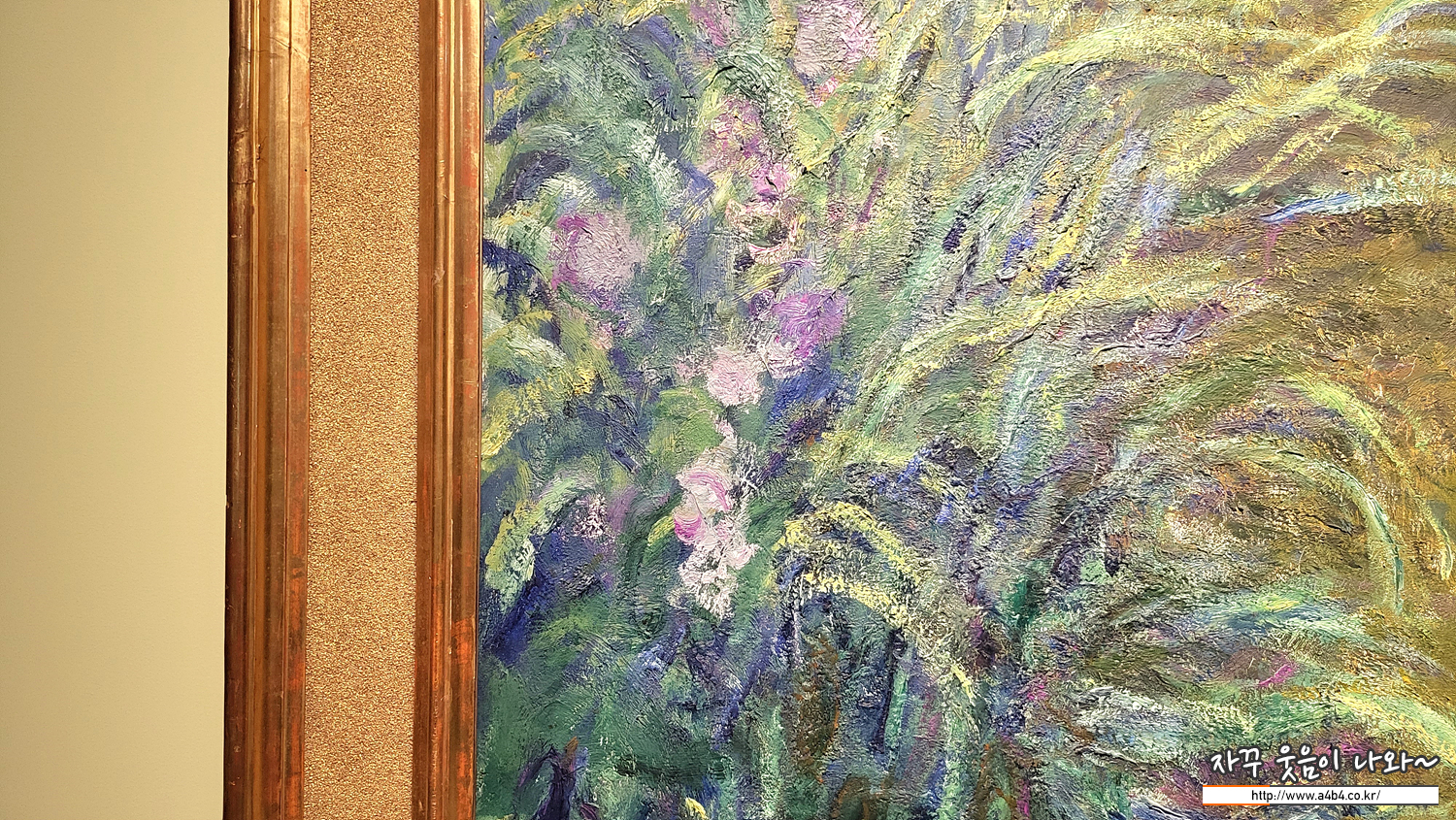 모네는 프랑스 인상주의의 대표 풍경화가입니다. 이 작품은 모네가 1914년에서 1917년 사이에 그린 붓꽃 연작 중 하나로 지베르니에 있는 그의 정원을 그린 것입니다.