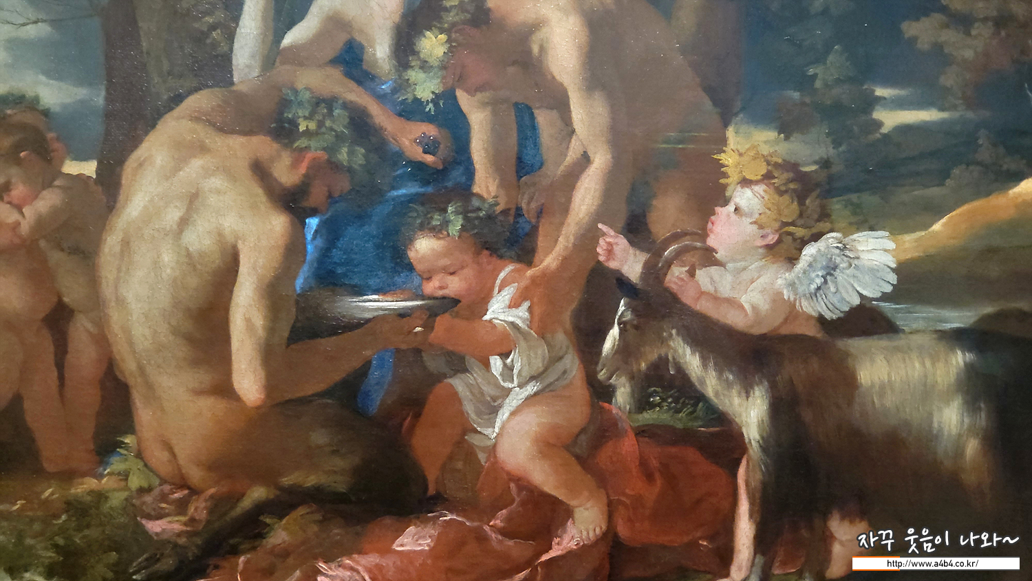 회화나 조각에 등장한 바커스는 보통 청년이나 노인, 그리고 그렇게 긍정적인 이미지로 표현된 작품은 기억이 없는데요. 이 작품에서 표현된 아기 바커스는...