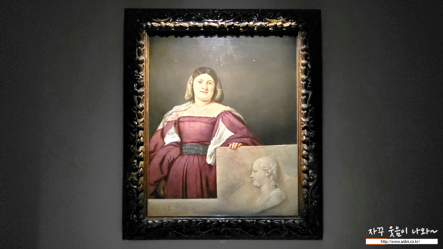 티치아노가 20대 초반에 그린 초상화입니다. 머리에 두른 베일을 비롯한 투명한 천의 표현에서 화가로서 티치아노의 솜씨와 기술이 젊은 나이에 이미 완숙기에 이르렀음을 알 수 있습니다. 조반니 벨리니의 제자인 티치아노는 르네상스 시대 베네치아의 대표 화가로, 유럽 각국의 강력한 통치자들이 그에게 그림을 주문했습니다.