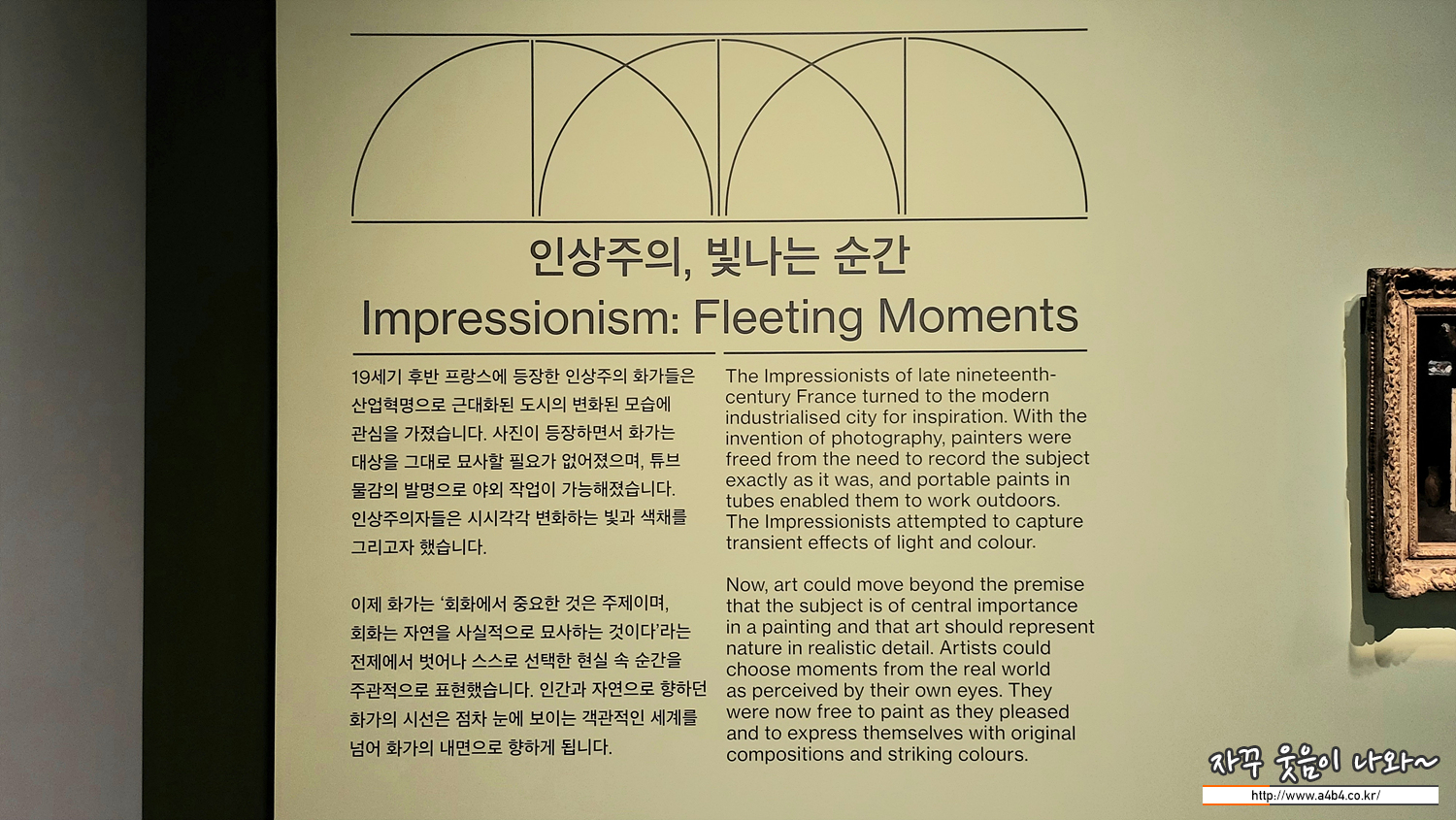 전시가 끝나고 전시장 마지막 공간에는 영국 내셔널 갤러리 전시관이 생각나게 하는 포토존이 준비되어 있으니 꼭 만나서 사진 찍고 전시장을 나가세요.