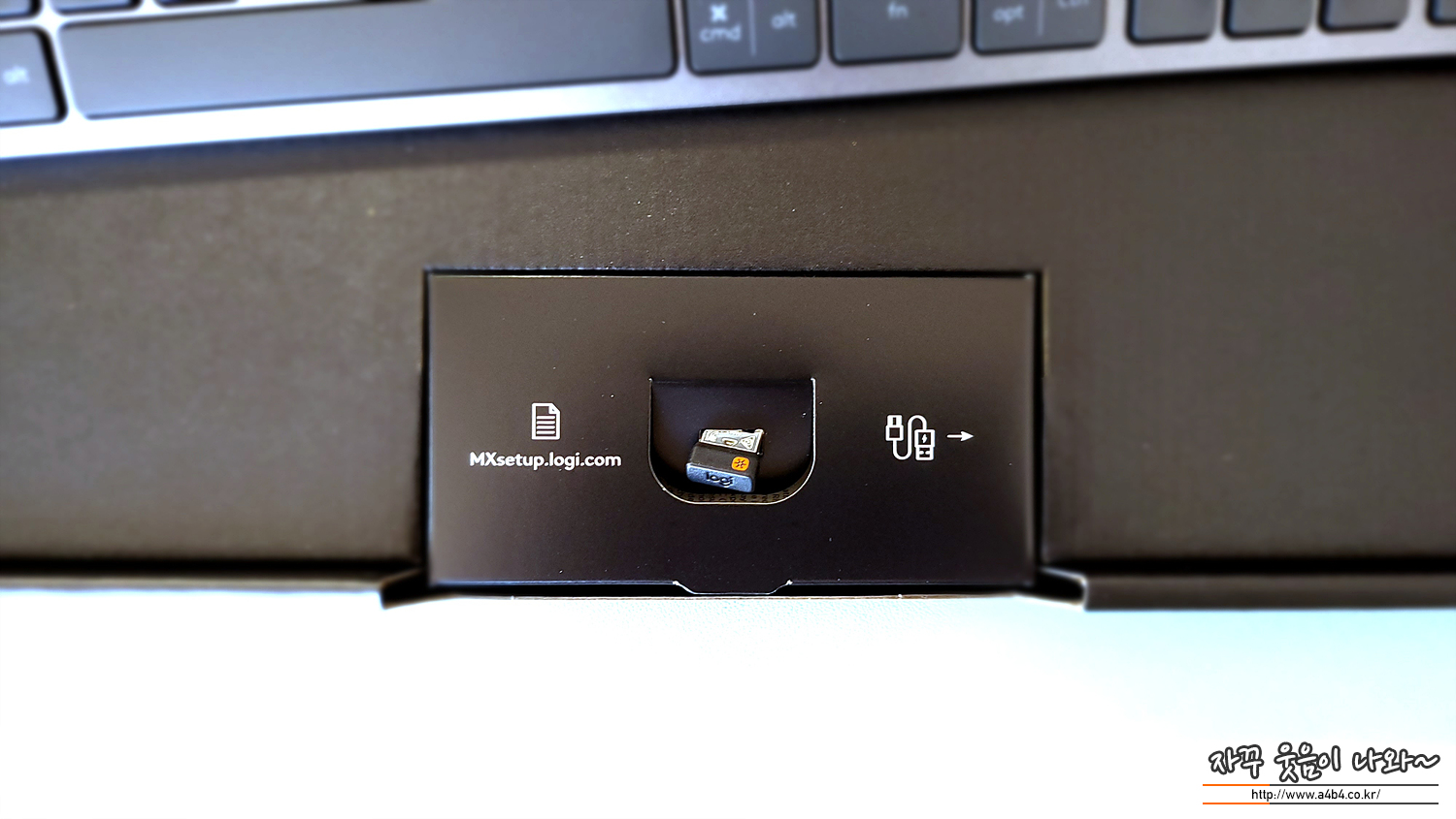 다만 아쉬운 부분은 키보드 몬체에 이 로지텍 수신기를 삽입 - 보관할 수 있는 슬롯이 없습니다. 잃어버리기에 딱 좋다는...
