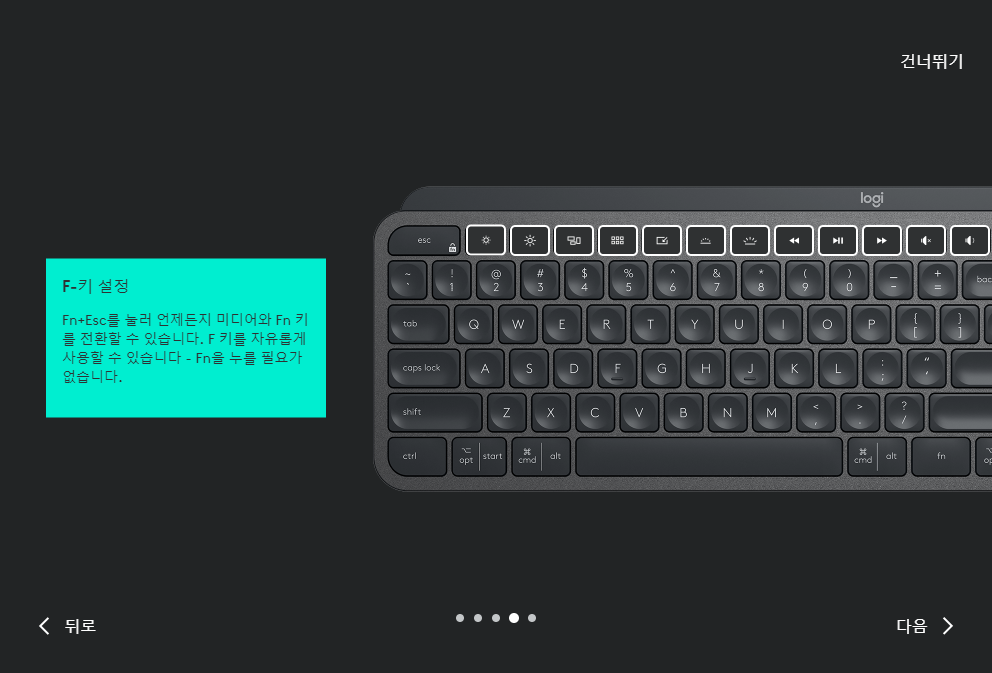 다만 로지텍 키보드의 경우 F키의 경우 기본설정이 미디어로 되어 있는데. Fn + esc키를 누르면 다시 기본 F키 우선으로 변경이 가능합니다. 다른 로지텍 키보드 F키 세팅은 매우 짜증나는 부분이 있었는데, 편하게 개션 되었네요.
