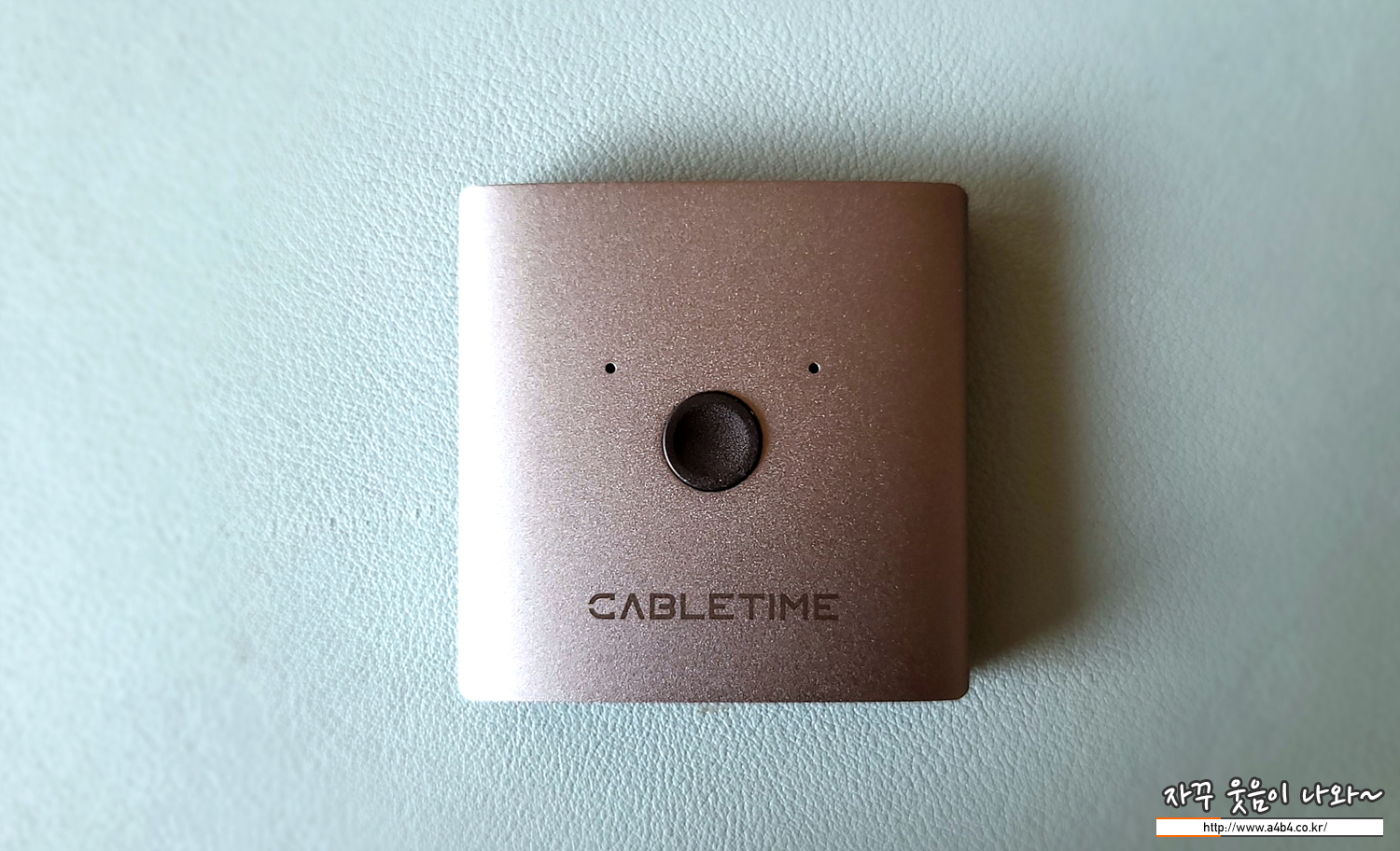 케이블타임 HDMI 분배기는 사이즈 가로 세로 각각 52mm로 앙증맞은 사이즈의 제품입니다. 일반적인 명함 2/3 사이즈 정도 생각하시면 됩니다. 알루미늄 합금 재질로 고급스러운 디자인을 보입니다.
