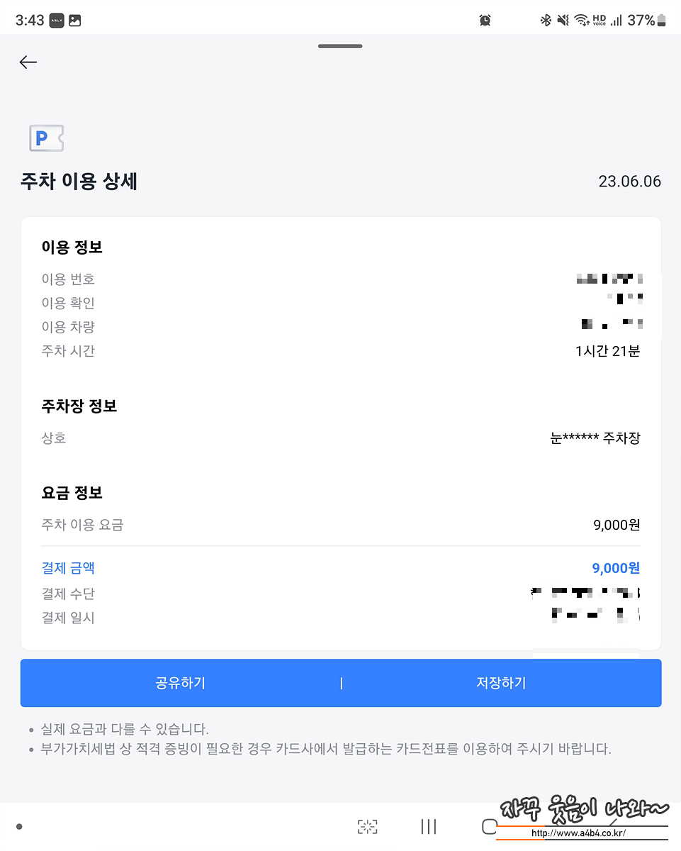 주차요금 정산 방식이 독특합니다. 30분 단위로 주차요금이 계산되며 30분에 3천원입니다. 만약 31분을 주차하면 주차요금이 6천원 부과됩니다. 1시간 1분을 주차하나, 1시간 30분을 주차하나 주차 요금은 9천원으로 동일합니다. 일반적으로 주차요금은 10분 단위로 정산되는 것과는 차이가 있습니다.