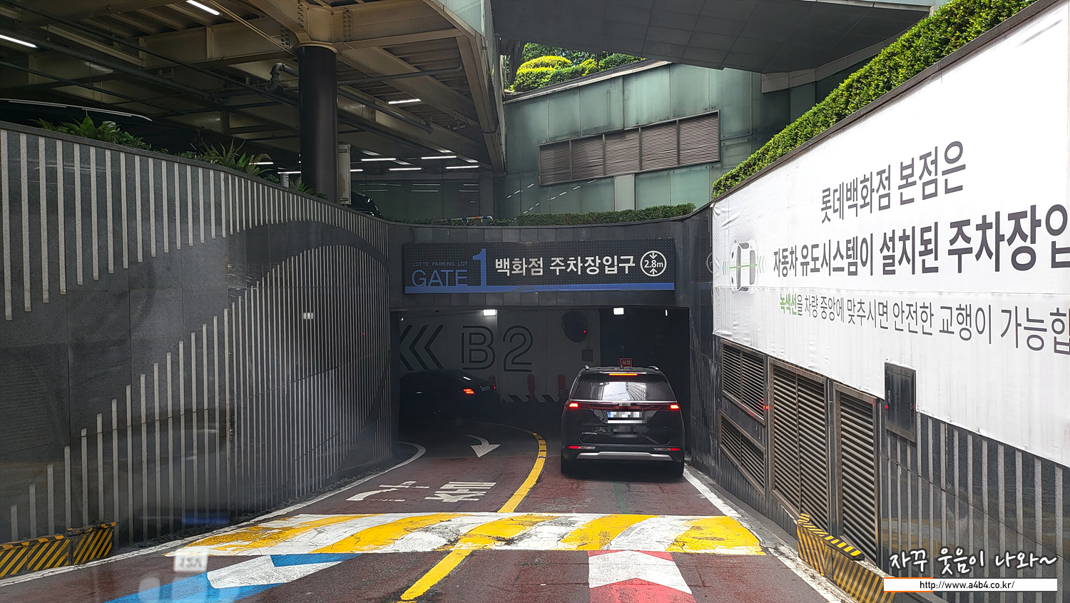 본점 주차장은 돌고돌아 지하로 이동합니다. 지상은 롯데백화점 VIP 대상으로 운영되는 것 같고요. 일반 방문객은 지하로 안내 받습니다. 이 또한 아래로 아래로 이동합니다.