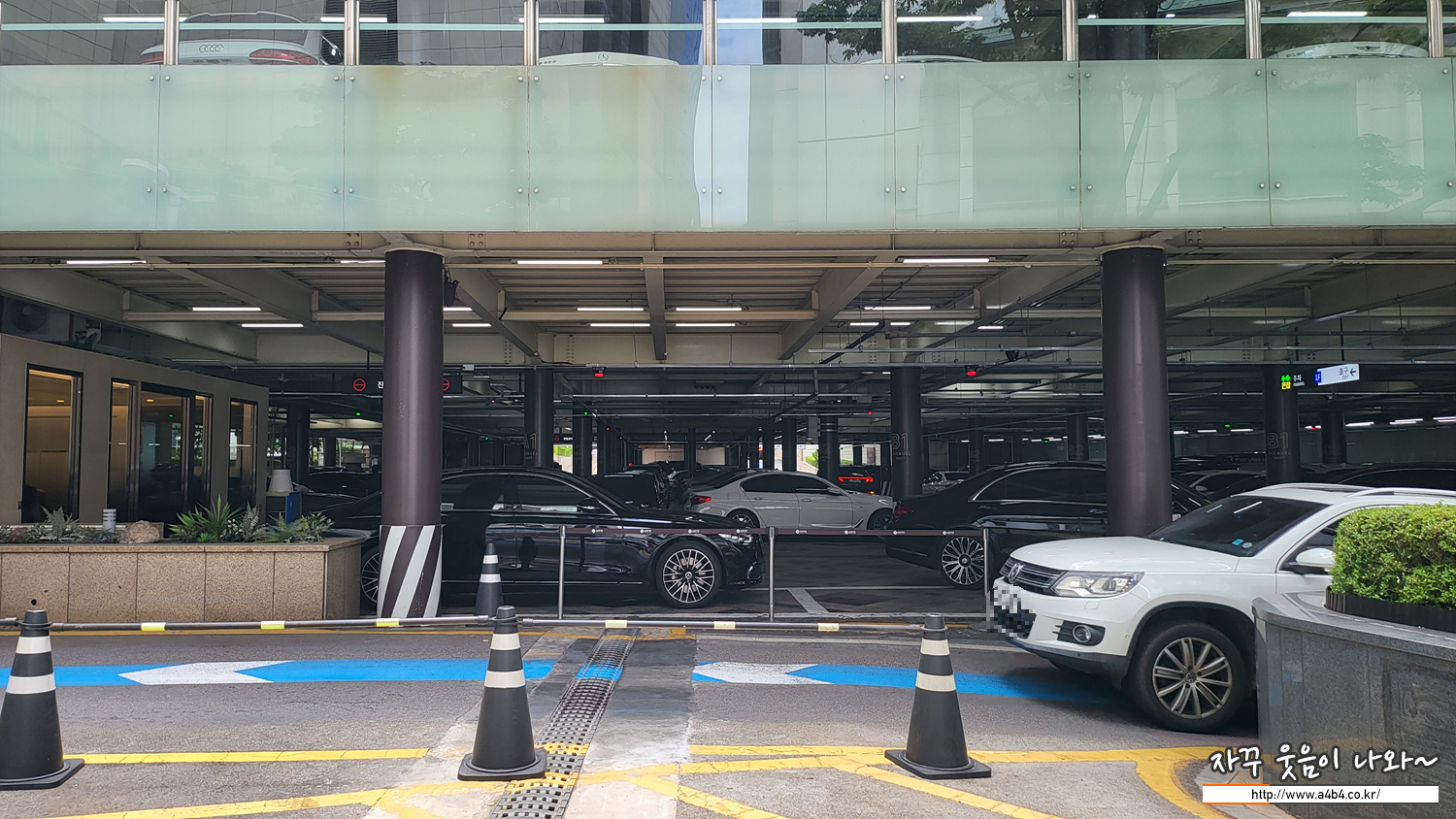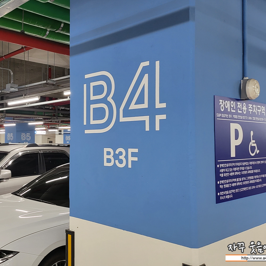 저희는 지하 3층에 주차공간이 여유 있어 이곳에 주차 했습니다. 더 아래에는 기계식 주차장이 있는 것으로 알고 있습니다. 워낙 오래된 건물이어서 그런지 주차장 간격이 좁지는 않지만 여유 있지도 않네요.