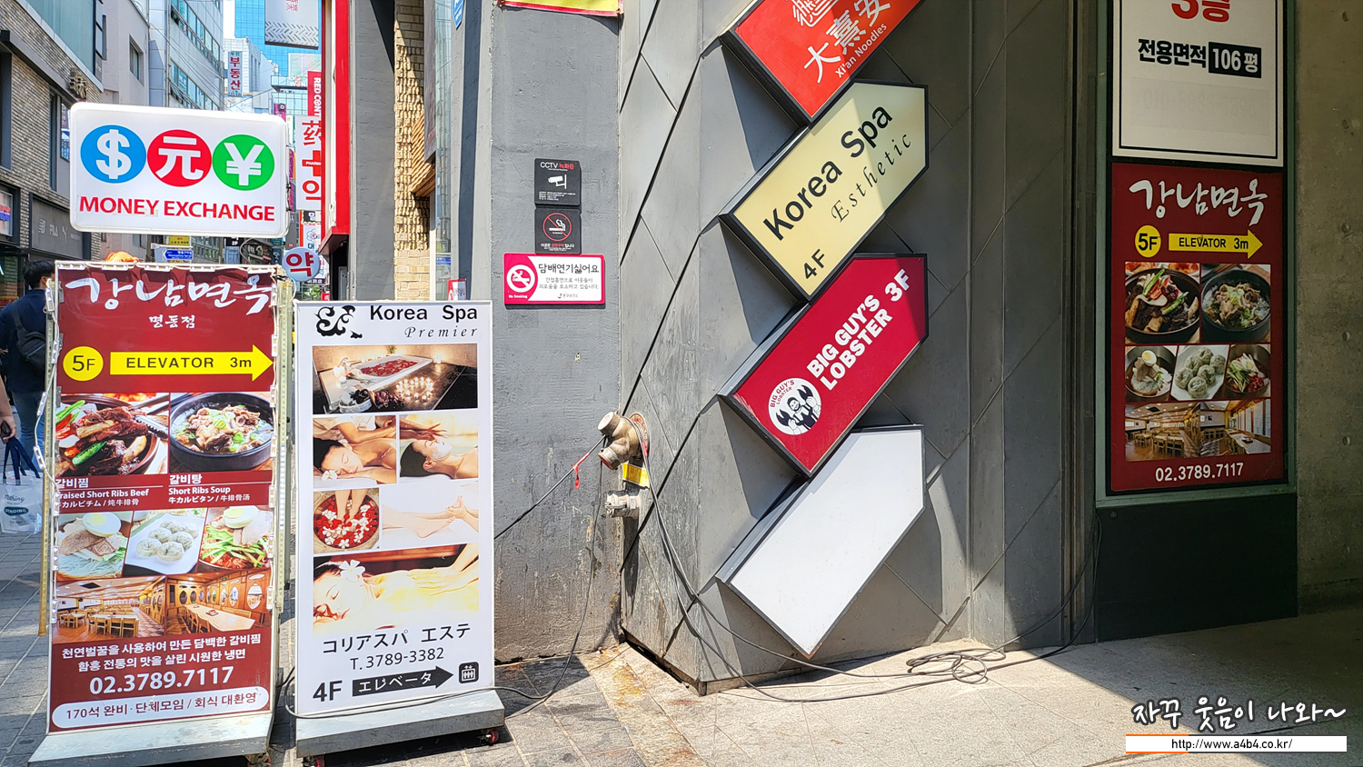 그래서 날도 덥고, 냉면을 먹기로 하고 대기 없는 곳을 찾다가 국립극단 명동예술극장 근처에 있는 강남면옥 명동점으로 이동합니다. 위치가 극장 뒷편 골목이고 빌딩 5층에 있어 접근성이 다소 떨어지는데요. 그래서 대기 없이 먹을 수 있을것 같은 희망으로...