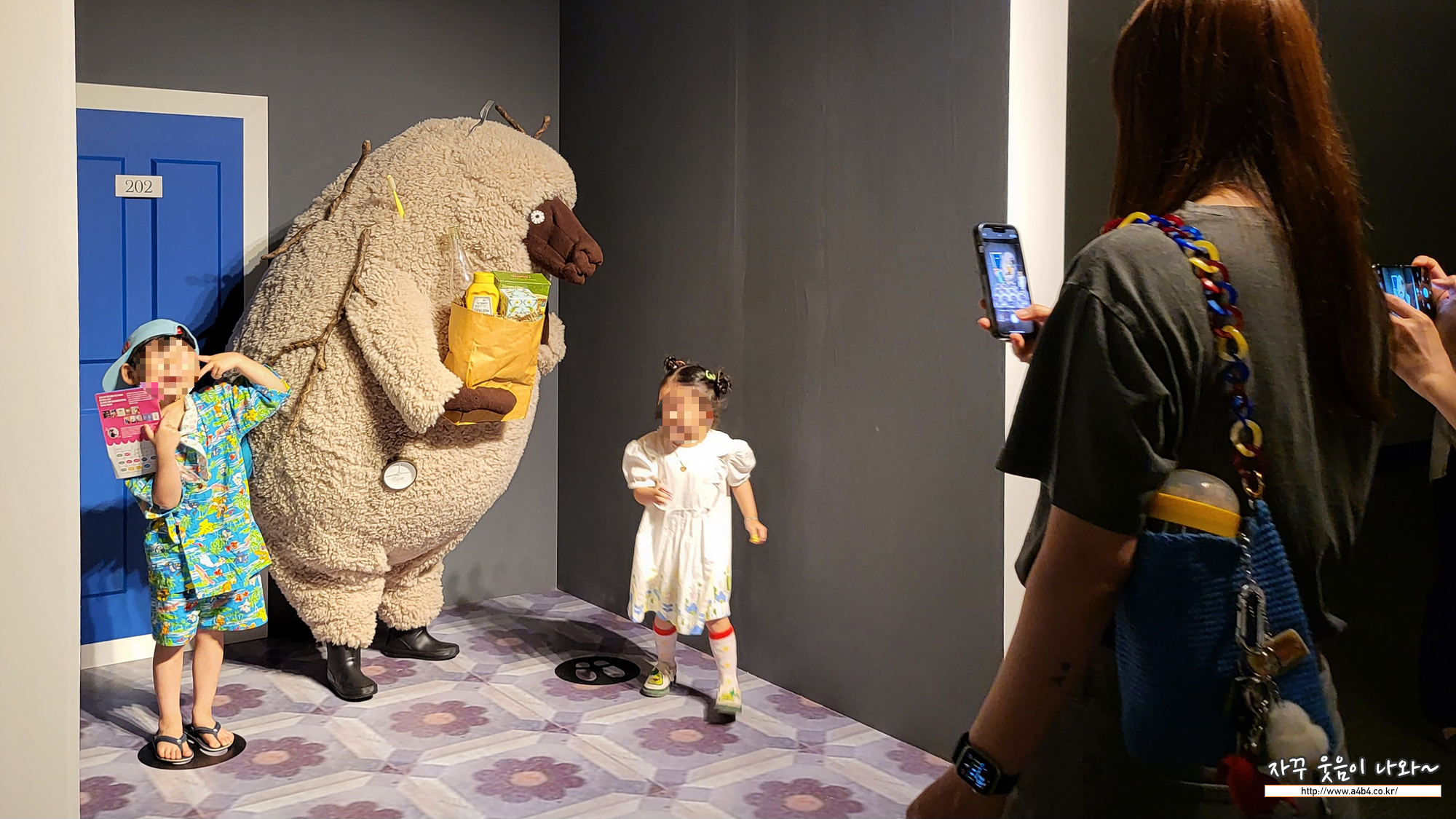 이곳은 작가의 대표작품 캐릭터와 공간을 실물크기로 구성하여 작품속 등장인물과 함께 사진촬영이 가능한 공간입니다. 토요일 오후여서 그런지 아이들과 함께 가족단위 방문객들이 많았는데요. 다 이곳에 있네요.