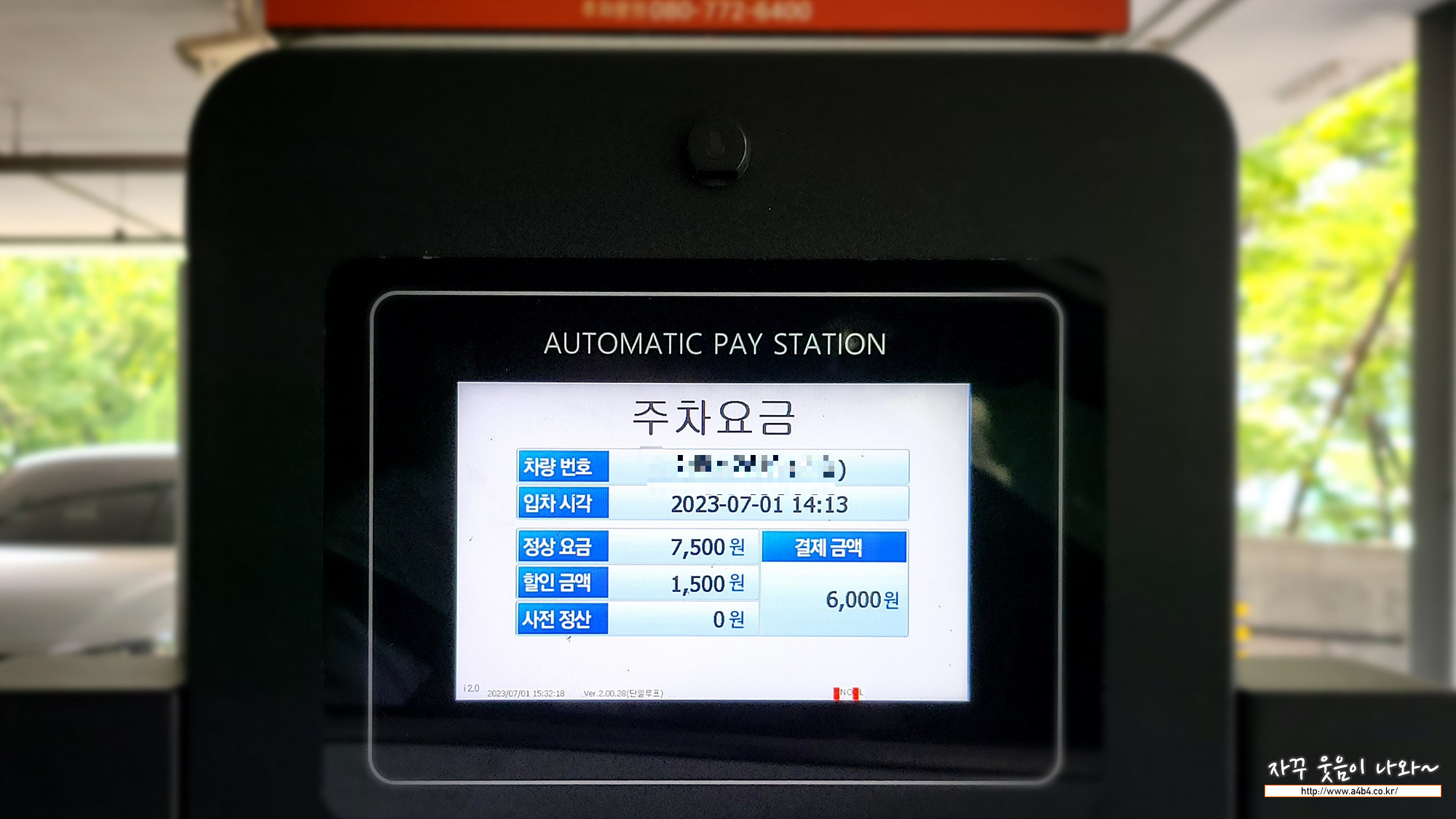 저는 하이브리드 차량으로 주차요금 50% 할인이 가능한데요. 아래와 같이 6,000원에서 3,700원으로 예술의전당 주차요금 할인받고 출차했네요