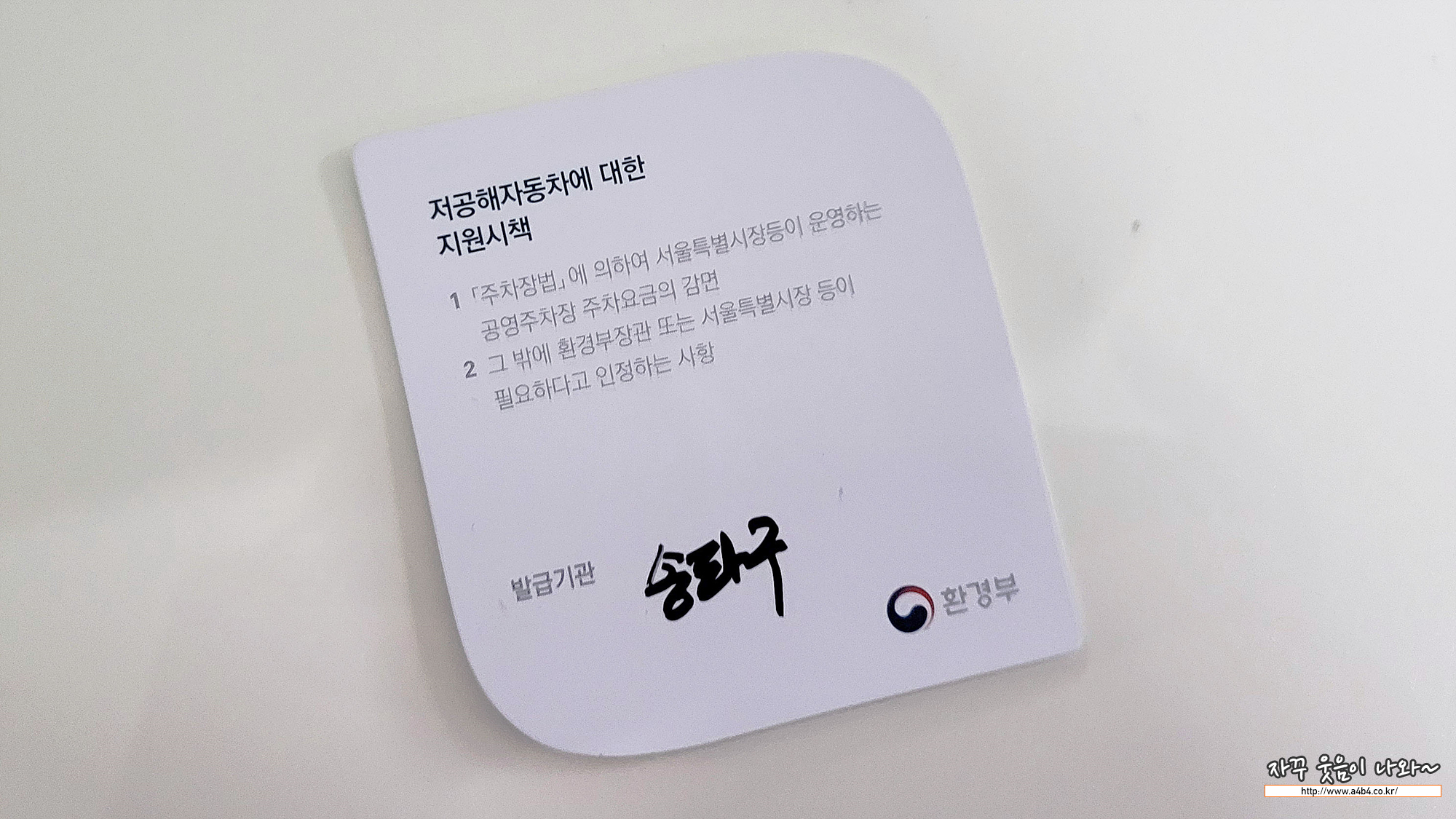 예술의전당은 공영주차장으로 정부에서 정한 주차요금 감면조건이 적용됩니다. 저공해 차량의 경우 50% 할인이 가능한데요. 아쉽게도 할인요금의 50%할인이 아닌 정가의 50% 할인입니다.
