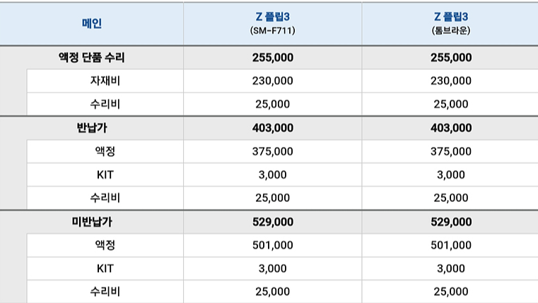 | 갤럭시 z 플립 액정 파손 수리 비용
