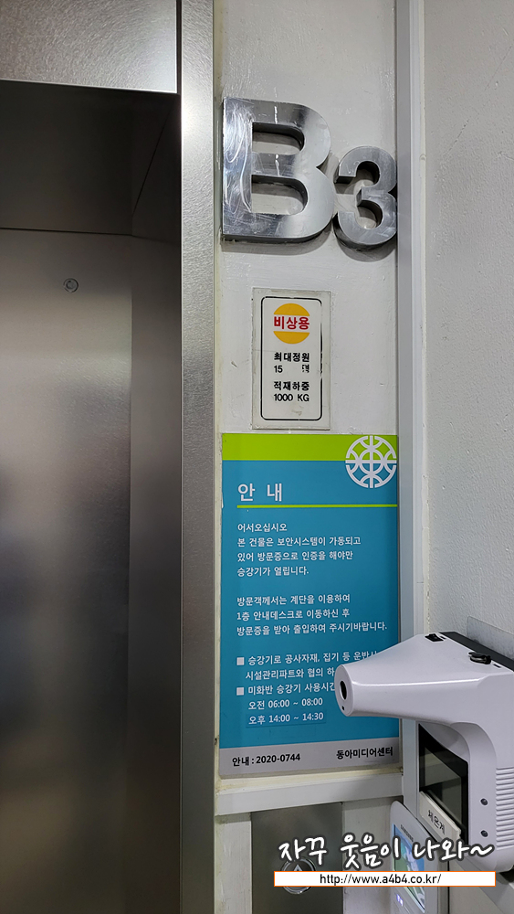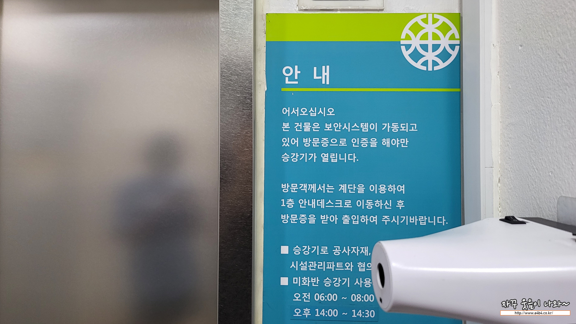 보안 문제로 제가 주차한 지하 3층에서 1층까지 계단을 이용해서 올라와야 합니다. 직원이나 방문증이 없다면 엘리베이터 이용이 불가합니다.