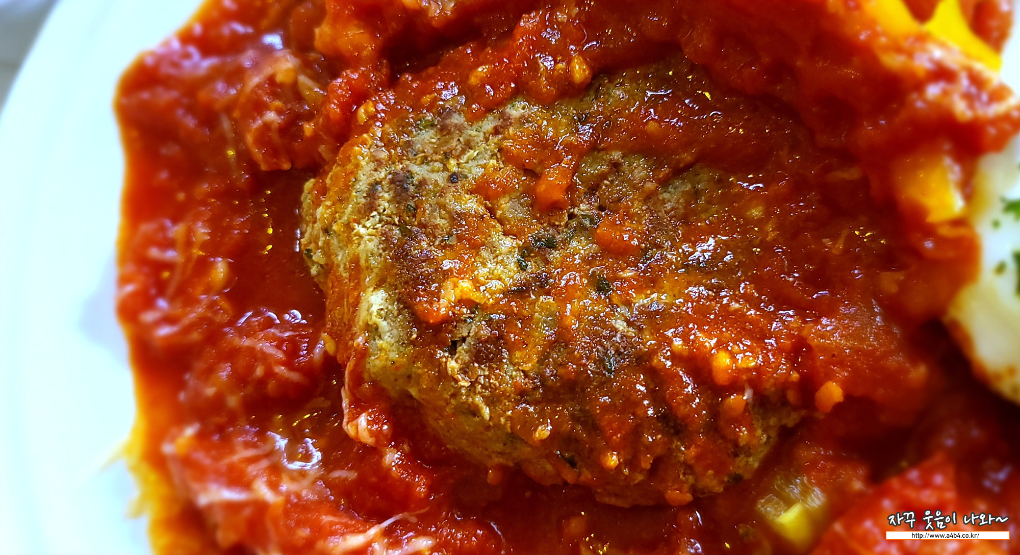 토마토 함박스테이크를 생각했는데, 이름에 칠리가 들어있네요. 살짝 매콤합니다. 아니 조금 매운 맛을 보여주는 토마토 함박스테이크 입니다.