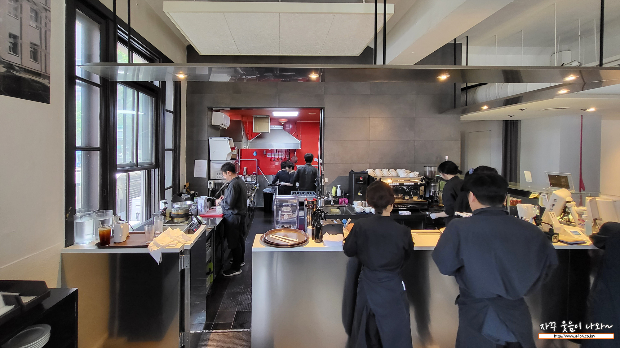 영업시간은 주말은 12시, 평일은 오전 11시에 오픈합니다. 라스트 오더는 오후 5시 30분, 영업마감은 저녁 6시 30분 입니다. 광화문 맛집 카페이마 실내는 중앙 입구를 기준으로 좌우로 세팅되어 있습니다. 4인 테이블 기준으로 20여개의 테이블이 세팅되어 있는데요. 평일 점심시간에도 자리는 만석입니다.