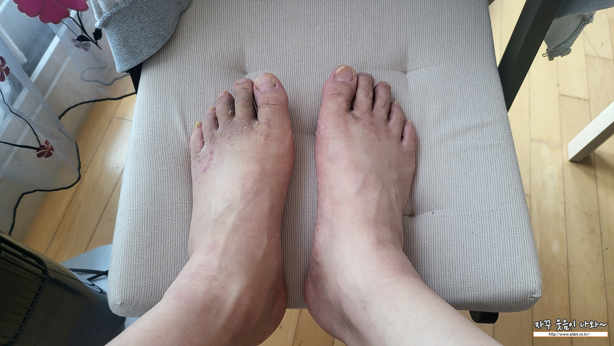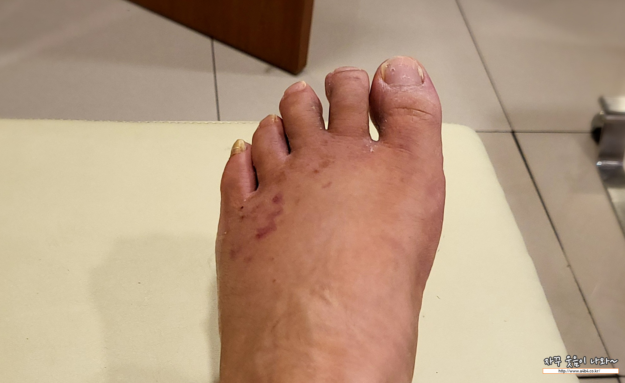 이런저런 치료를 받다 보니 발 상태가 말이 아닙니다. 발가락 골절 회복에 2~3달 걸린다고 하니 관리가 쉽지는 않겠네요. 대중교통으로 출퇴근하다가 요즘은 힘들어서 자가용으로 출퇴근 하는데요. 지하철로는 30분도 안걸리는 곳을 자가용으로 다니니 시간이 배가 걸리네요.