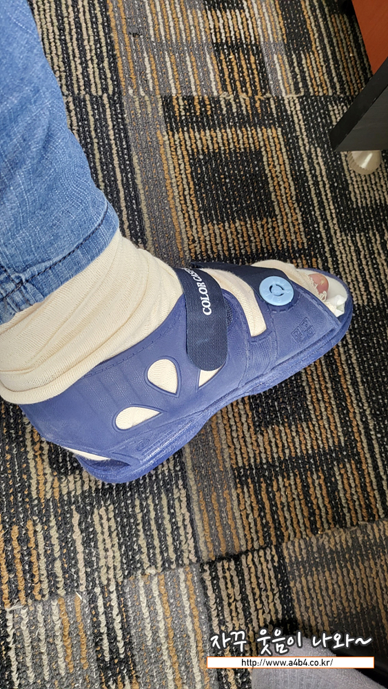 진료 받고, 발가락 골절 부위에 반깁스 하기로 합니다. 여름이서 걱정이었는데. 발에 통깁스가 아닌 반깁스를 하게 되었네요. 대략 2개월 정도 반깁스를 해야 한다고 합니다.