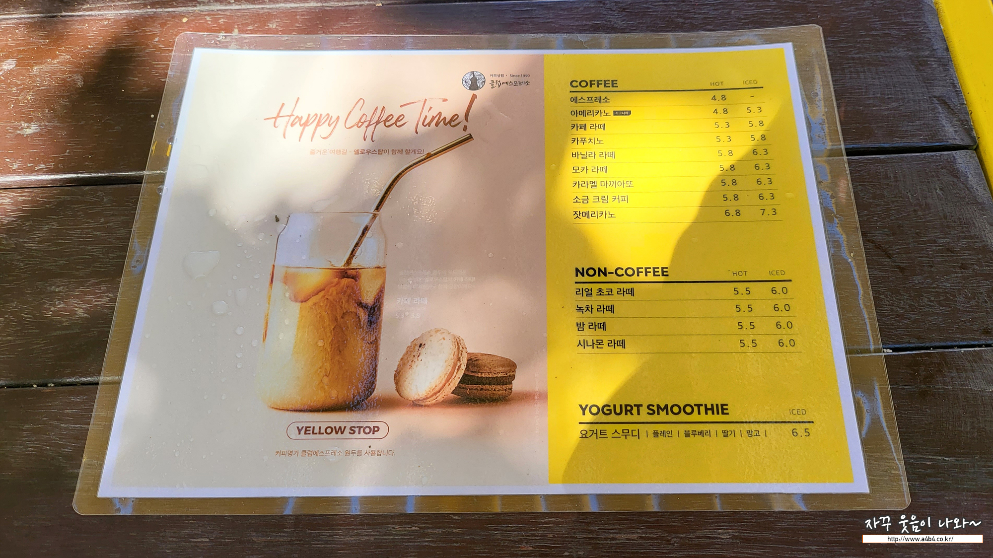 이곳 강아지 고속도로 휴게소 옐로우 파크에는 음료를 주문할 수 있고, 앉아서 먹을 수 있는 공간이 마련되어 있습니다. 또한 가평휴게소 식당에서 사온 음식도 가지고 와서 먹을 수 있는데요.