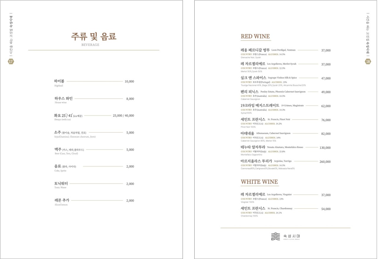 | 잠실 숙성시대 메뉴 및 가격