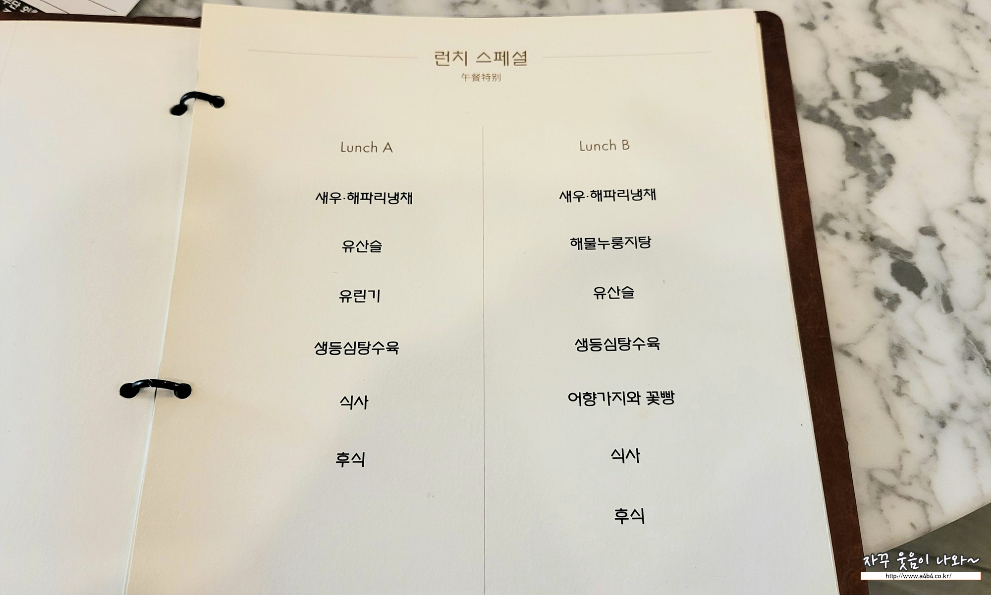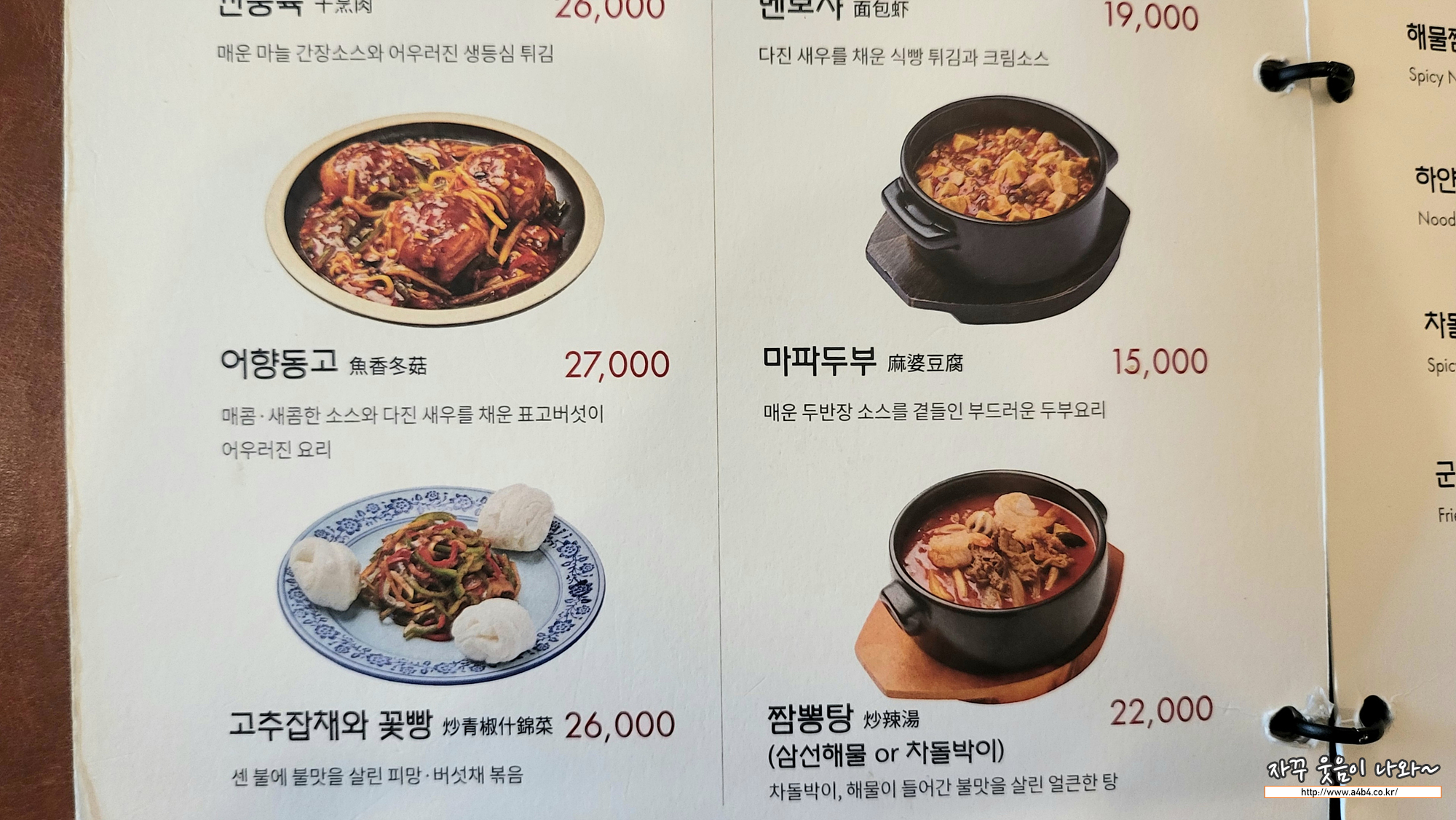 코스요리는 3만원 초반부터 6만원 중반 가격입니다. 런치스페셜은 A와 B 코스가 있는데요. A코스 가격은 23,000원 B코스는 26,000원입니다. 부담없는 가격에 다양한 중국요리를 맛볼 수 있는 메뉴입니다만... 저희는 꼭 먹고 싶은 메뉴가 있어 단품 중심으로 주문했습니다.