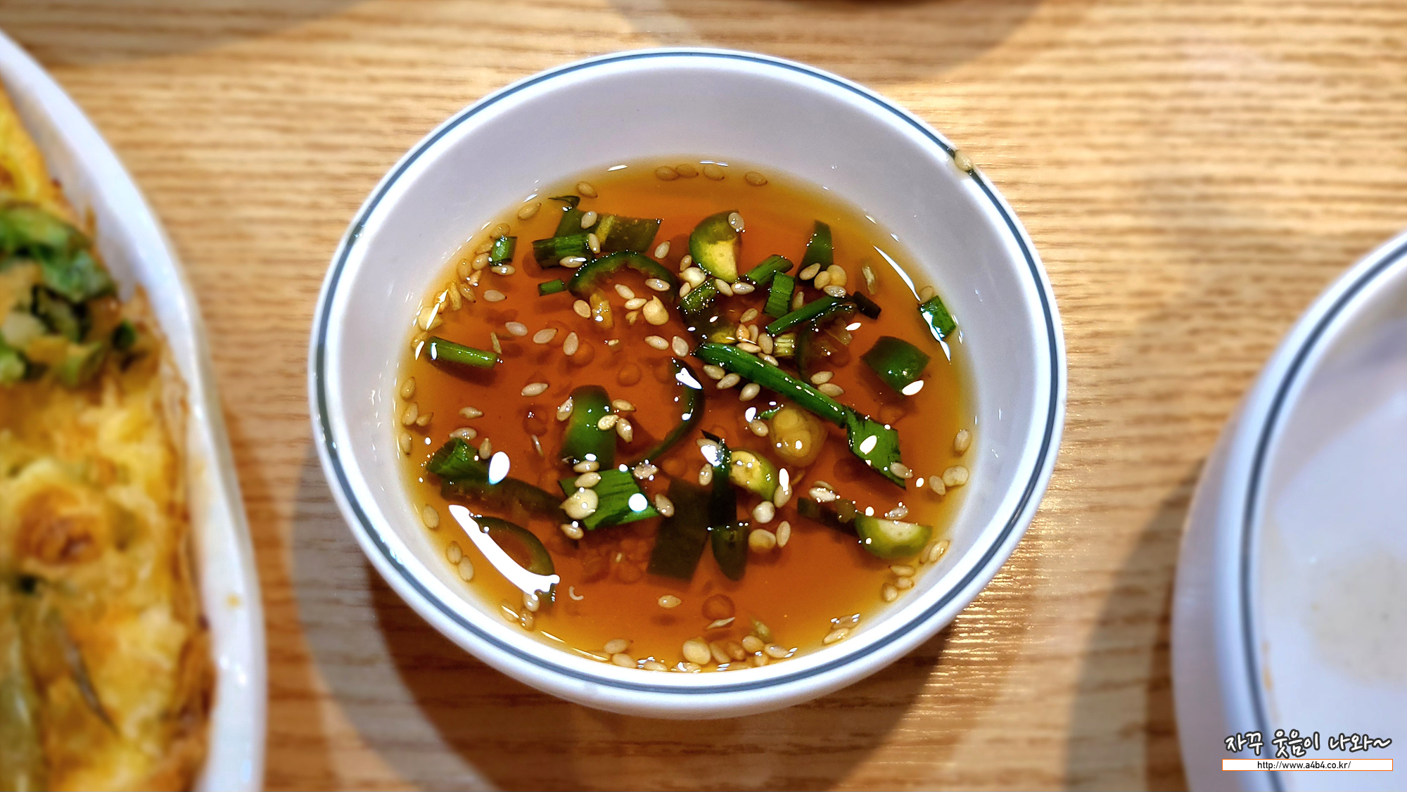 간장이 같이 나오지만, 기본 파전이 짭짤해서 별도로 찍어먹을 일은 없었네요.