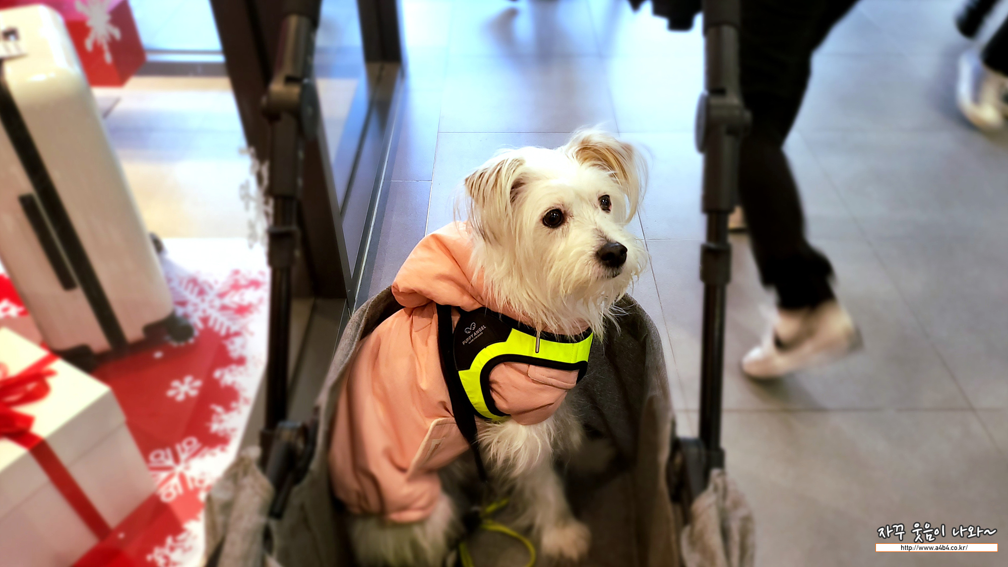 간혹 이런 곳에서 개모차를 대여 받으면 적응하지 못하는 반려견들도 있다고 하는데요. 큰 문제없이 잘 적응하고 다녔네요.