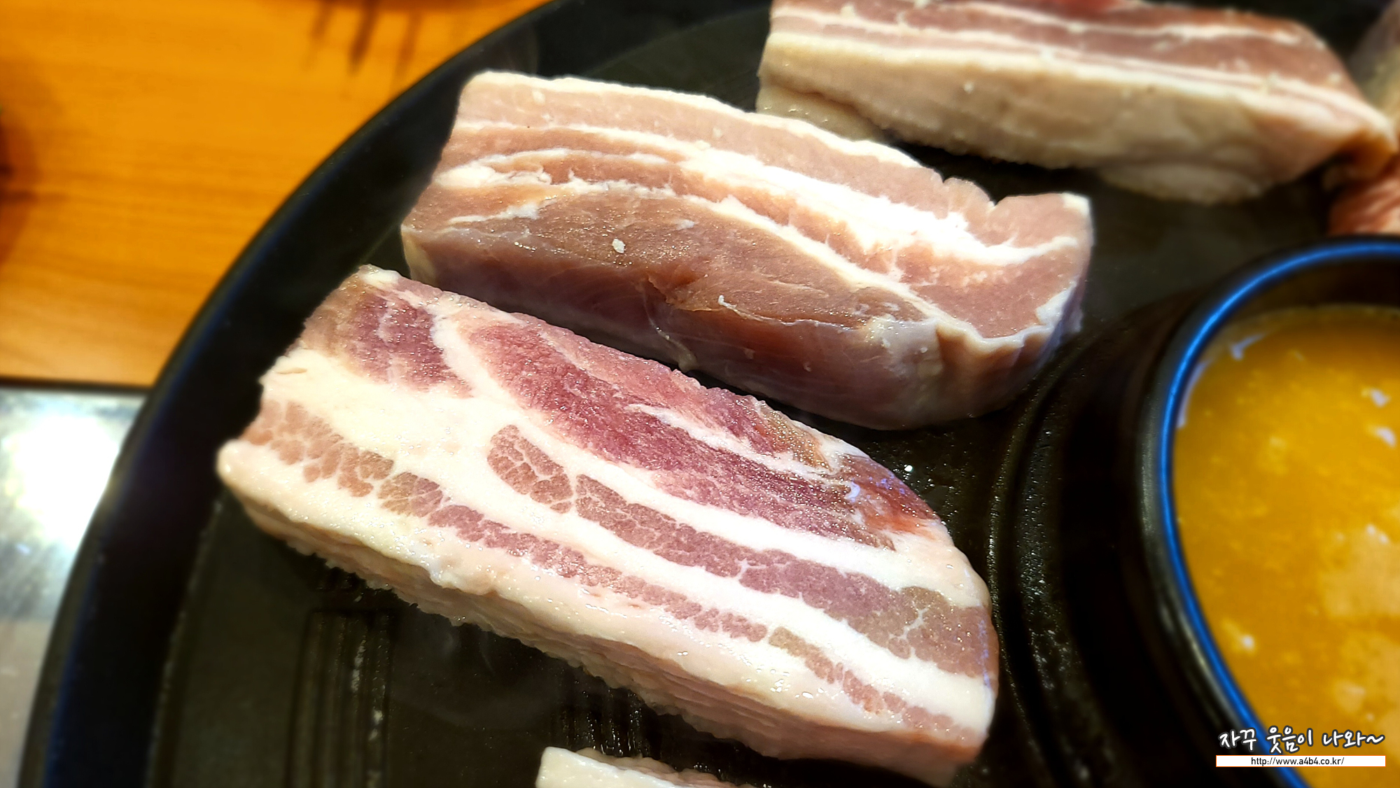 불판위에 두꺼운 삼겹살이 올라가니 구워지는데 시간이 필요합니다.