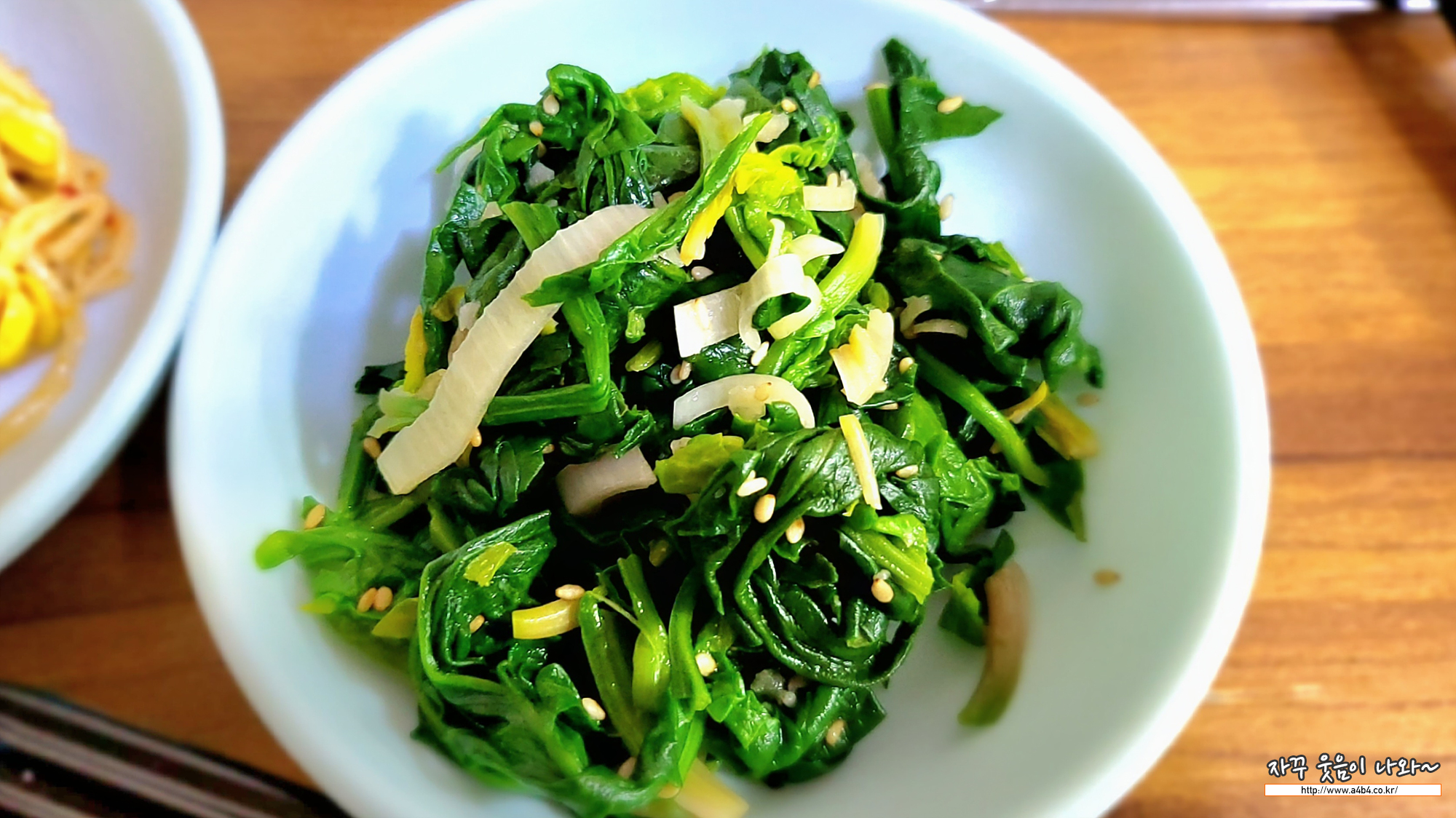 오이, 콩나물, 시금치 무침. 그리고 쪽파김치