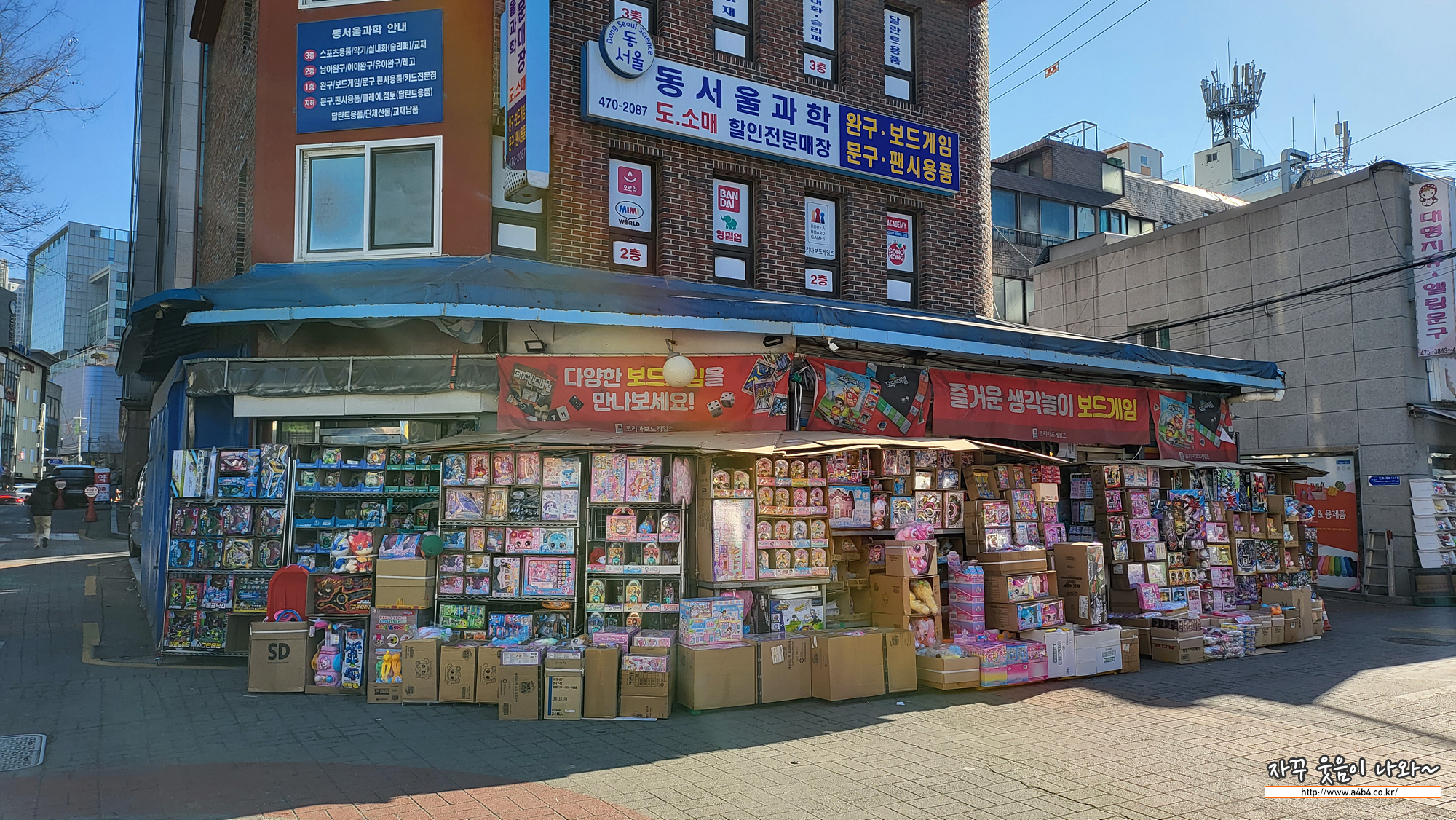 이곳 천호동 완구거리에서 가장 크고 중앙에 위치한 곳입니다. 아이들이 좋아하는 문구와 완구는 여기에서 저렴한 가격에 모두 다 만나볼 수 있습니다. 작고 소소한 완구부터, 자전거 등 부피좀 나가는 완구까지 모두 다 만나볼 수 있습니다.