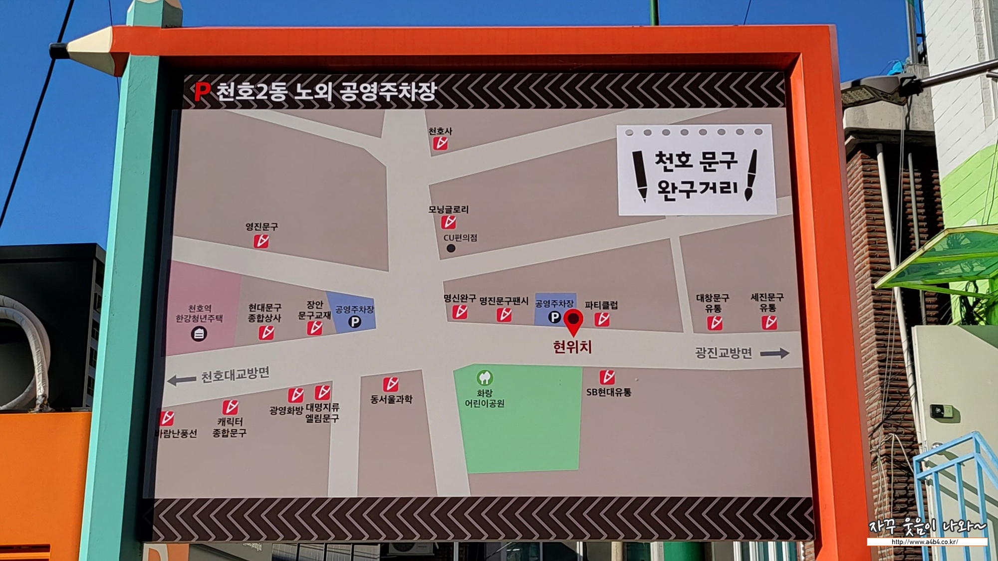 오늘은 천호 문구완구거리 위치 및 주차장, 주차요금, 무료주차 정보 공유합니다.