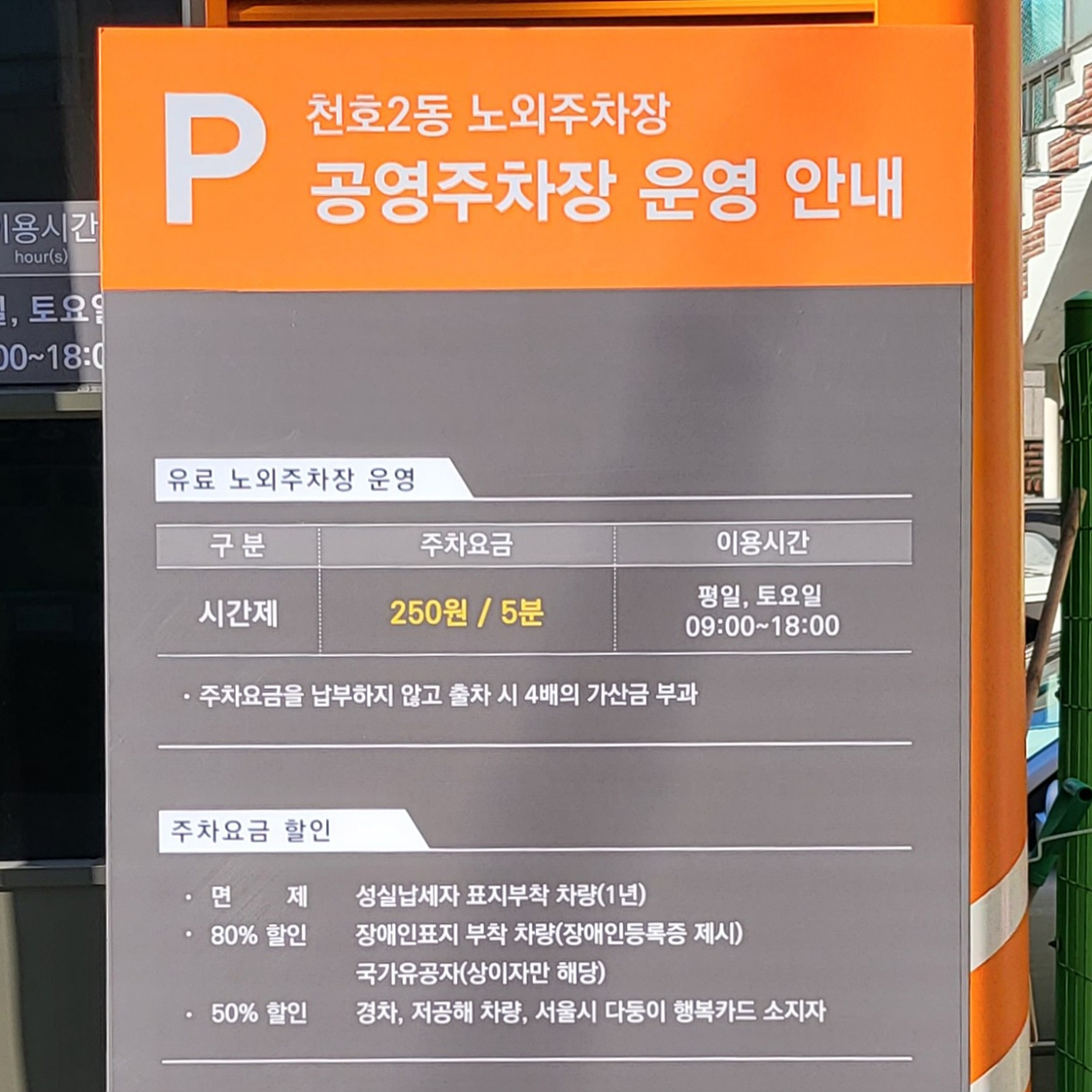 | 천호동 문구완구거리 주차장 주차요금 > 토요일 저녁 일요일 무료
