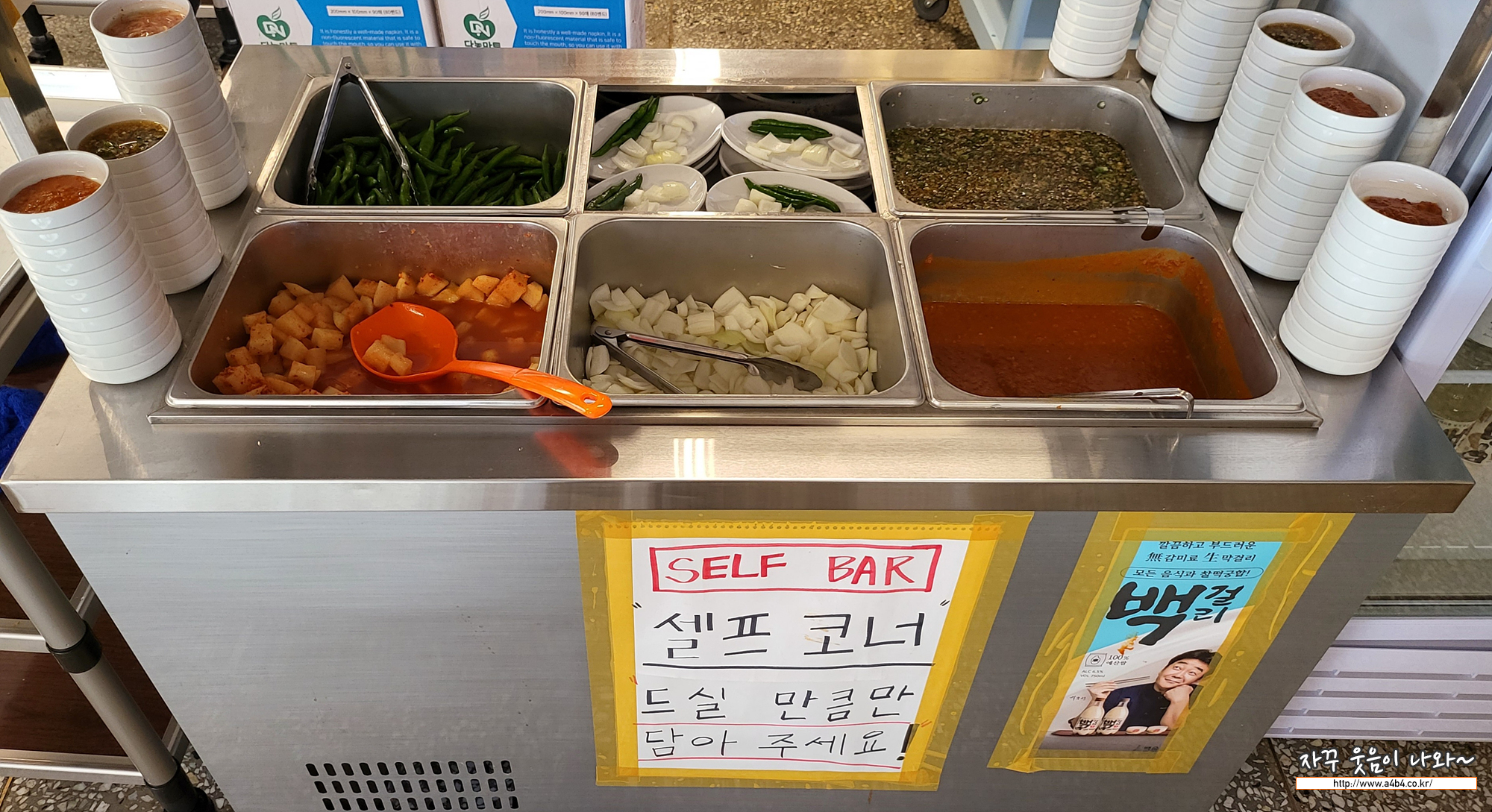 호석촌 깍두기와 양파, 소스류는 중앙에 있는 셀프코너에서 직접 가지고 오시면 됩니다.
