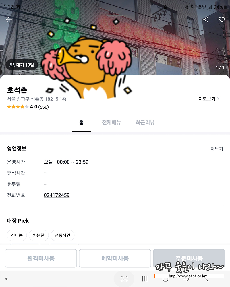 서울 송파구 잠실 맛집인 이장우 원조 호석촌 주차 및 주차장. 예약정보 공유합니다. 요즘 급부상하는 맛집이지만 대중교통 접근성도 떨어지고 주차장도 없고 주차요금도 지원되지 않는 곳입니