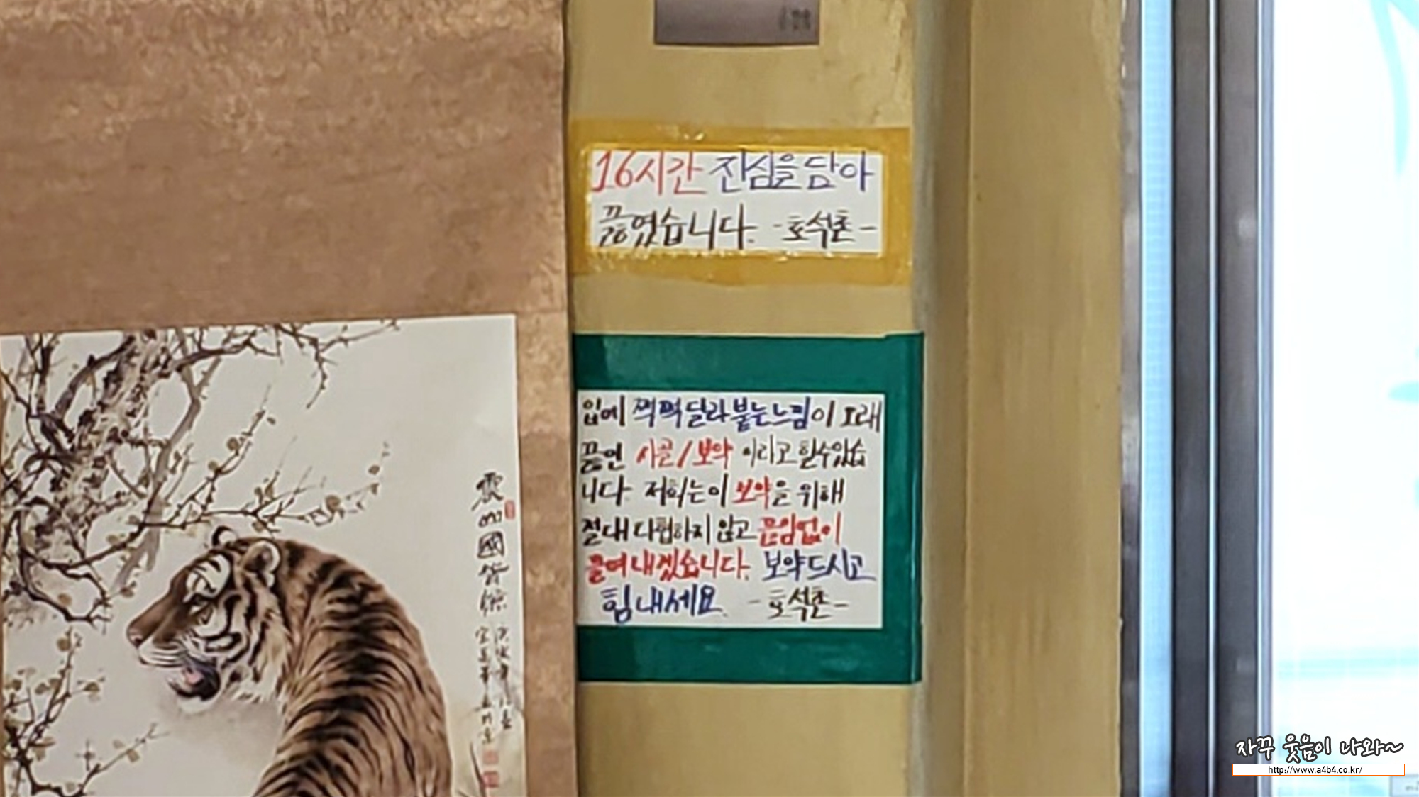 벽에는 호석촌 순대국에 대한 여러 설명이 있습니다. 16시간 진심을 담아 끓인 국물이라고 하네요. 보약이라고 생각하시라는... 그래서 국물 한 방울도 남기지 않고 먹으려고 노력했지만...