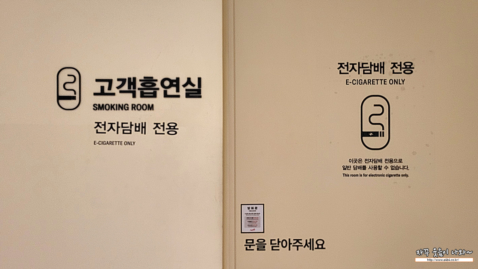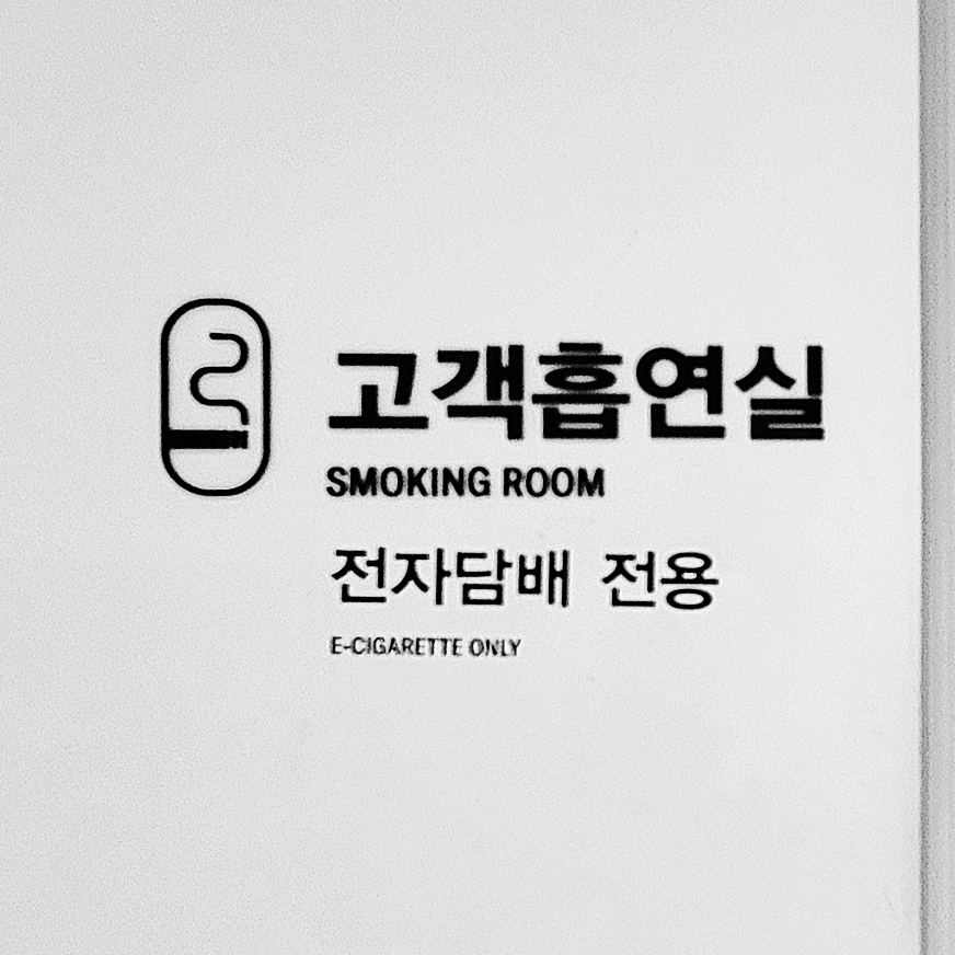 이렇게 이중문으로 되었고 전자담배 전용 흡연실이다 보니, 외부에서는 냄새를 전혀 느끼지 못할 것 같네요. 또한 실내에는 손을 씻을 수 있는 세면대도 비치되어 있습니다.