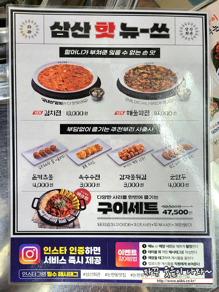 오늘은 신논현역 사거리에 위치한 돼지김치구이와 김치찌개 맛집 삼산회관 신논현점 주차 및 메뉴, 가격소개 입니다.